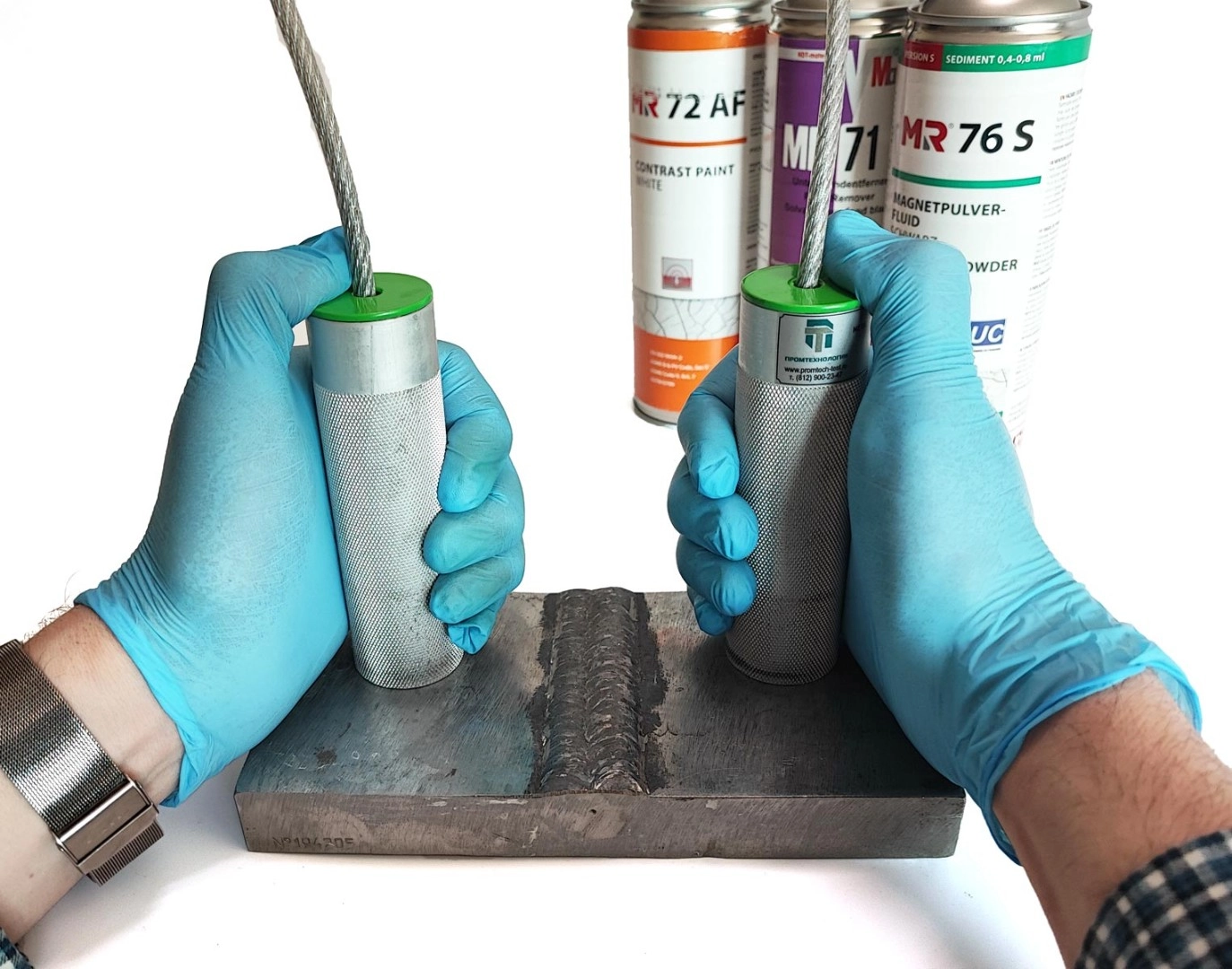 Это простой в применении и надежный механический прибор, состоящий из двух цилиндров с разнополюсными постоянными магнитами внутри соединенных гибким магнитопроводом. Стандартная версия дефектоскопа снабжена магнитопроводом длинной 50 см, удлиненная – 80 см. Магнитопорошковый дефектоскоп ПРОМТ МПД-ПМ не требует специальных навыков для работы с ним и позволяет оперативно проводить магнитопорошковый контроль в полевых и лабораторных (цеховых) условиях. Поставляется в удобной сумке с карманами и плечевым ремнем.