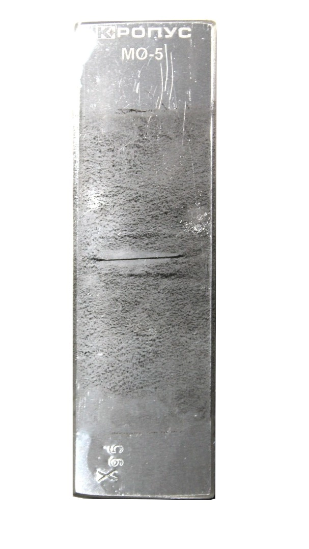 Контрольный образец МО-5 представляет собой пластину длиной 100 мм, шириной 30 мм и толщиной 5 мм, изготовленную из стали 20х13 с трещиной в азотированном слое.