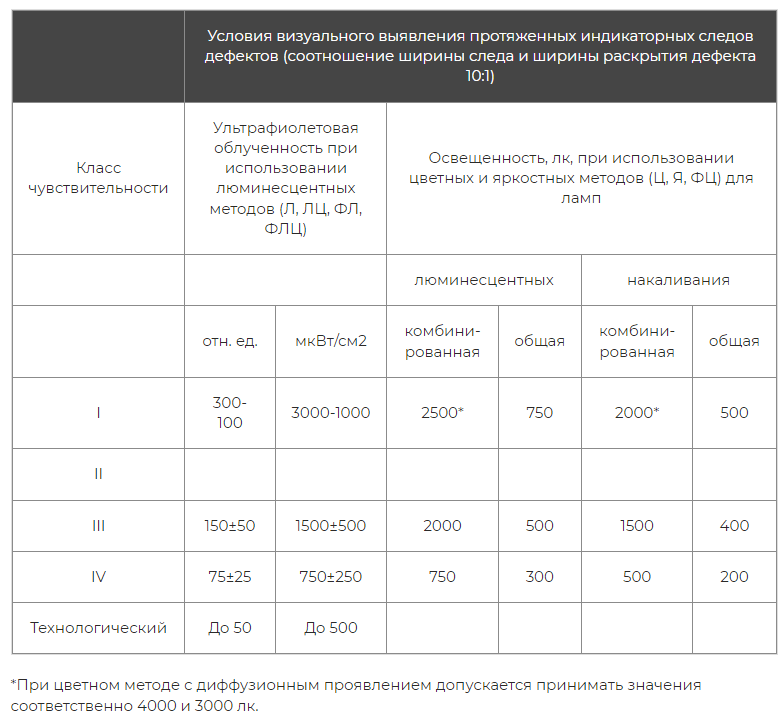 Стационарный светильник УФ-излучения с длиной волны 365 нм обеспечивает освещенность зоны контроля не менее 2000 мкВт/см2.