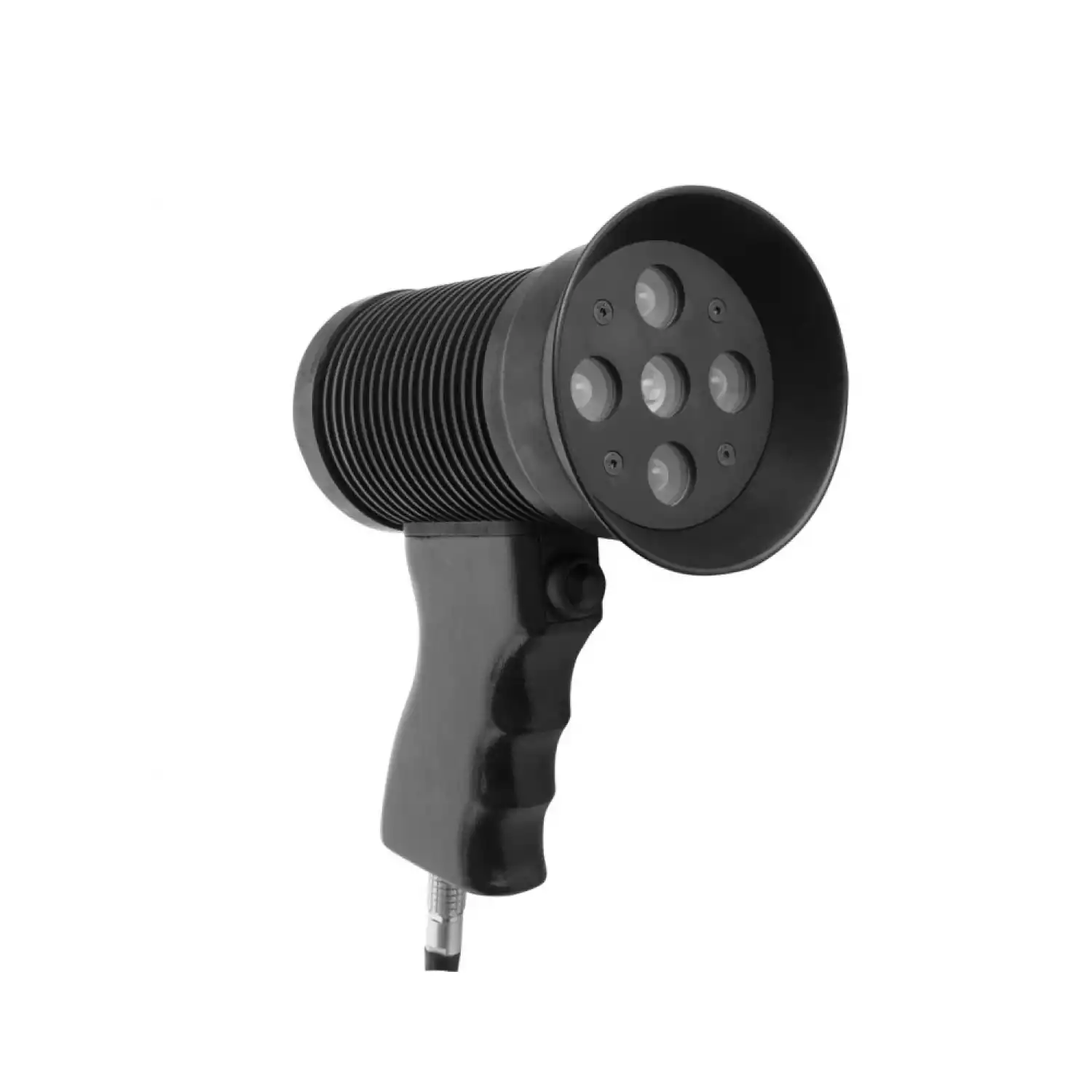 Светодиодный УФ-светильник Элитест УФС-12 предназначен для качественного выявления дефектов с использованием люминесцентных материалов при проведении капиллярной и магнитопорошковой дефектоскопии. Четыре мощных УФ-светодиода с индивидуальными линзами обеспечивают необходимый угол раскрытия светового потока для формирования высокой и равномерной интенсивности УФ-излучения на большой области контроля. Один белый светодиод, расположенный по центру, обеспечивает возможность проведения осмотра объекта контроля в видимом свете. Встроенный контроллер позволяет регулировать интенсивность УФ и видимого освещения, а также осуществлять простое и функциональное управление алгоритмом работы светильника. Светодиодный УФ-светильник Элитест УФС-12 может работать как от встроенной аккумуляторной батареи, так и от сети переменного тока во время зарядки батареи с использованием 6-метрового удлинительного кабеля из комплекта поставки.