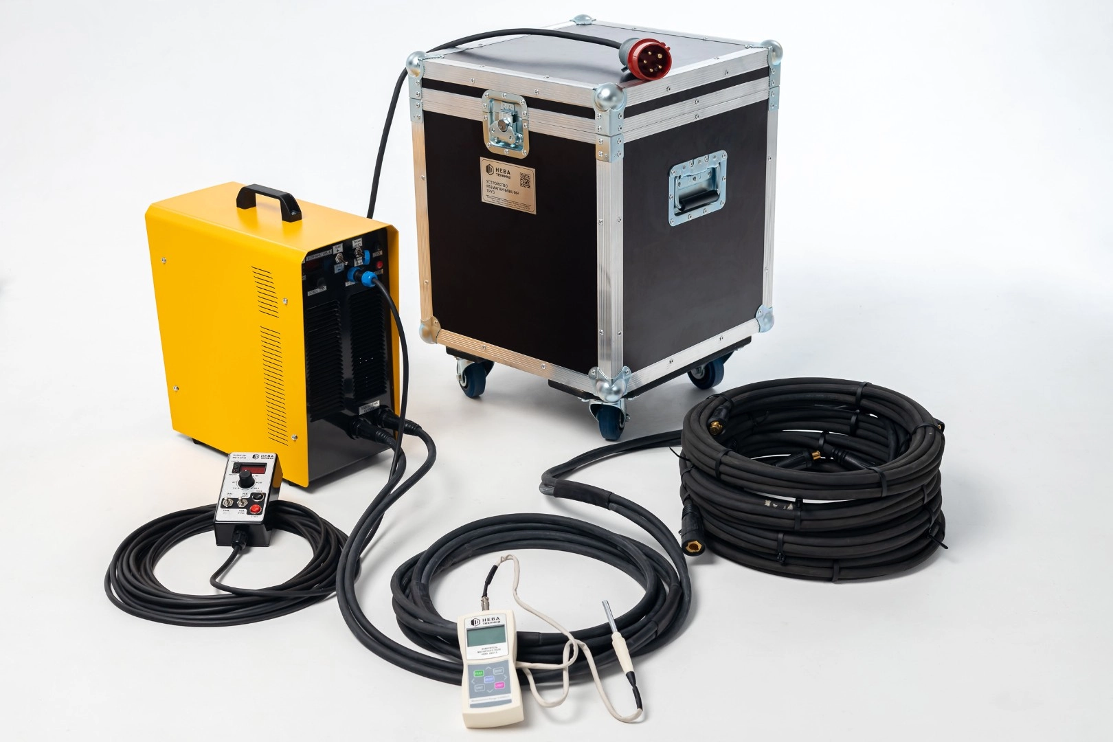 НЕВА MD-T1.P3/М1 оснащена дистанционным проводным пультом управления, комплектом универсальных размагничивающих обмоток, соединительным кабелем обмоток, датчиком магнитного поля (крепиться на торец трубы). Также в комплект поставки входит цифровой индикатор для контроля намагниченности.