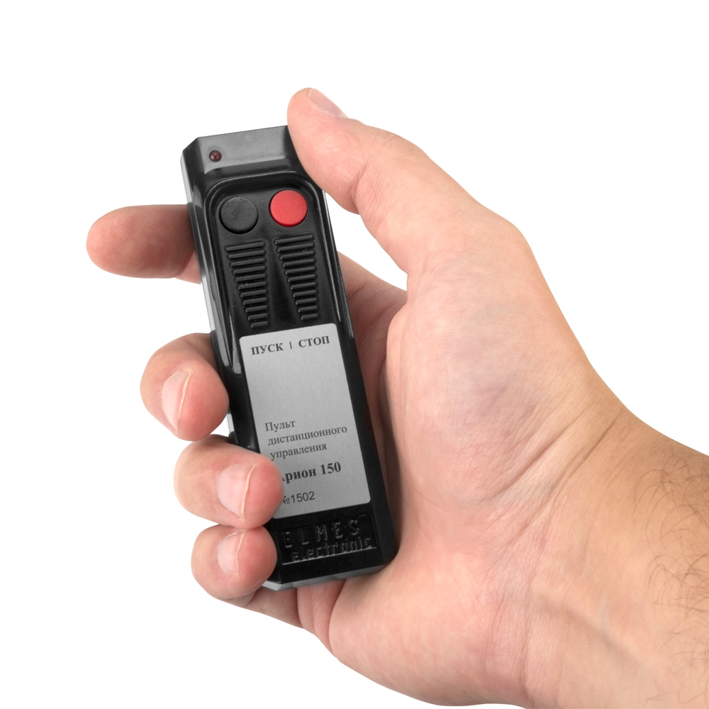 Арион-150 поставляется вместе с пультом дистанционного управления (ПДУ), кнопки которого дублируют кнопки «ПУСК» и «СТОП» на штатном пульте управления. Таким образом, управлять началом экспозиции и ее завершением можно дистанционно, по радиоканалу. Максимальный радиус действия пульта в открытом пространстве — 100 м.