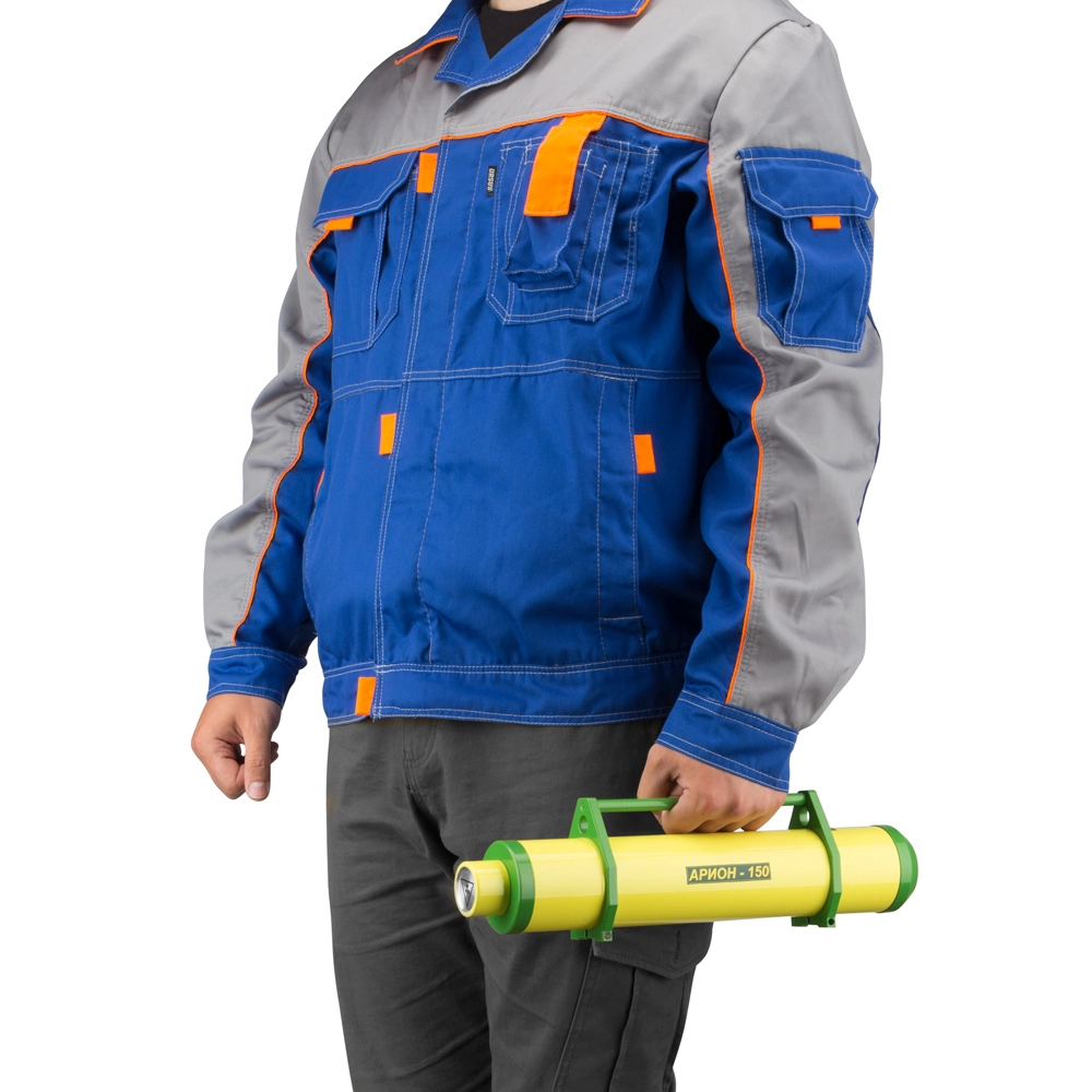 Арион-150 представляет собой мобильный, удобный и надежный прибор, который может использоваться как в стационарных, так и в полевых условиях. Он позволяет проводить контроль объектов при температуре окружающей среды от −30 до +50 °C, отличается малыми габаритами и массой: блок излучателя весит всего 2,5 кг. Питание аппарата может осуществляться от аккумуляторной батареи, сети переменного тока 220 В или любого внешнего источника постоянного тока 12 В мощностью не менее 150 Вт (например, бортовая сеть автомобиля).
