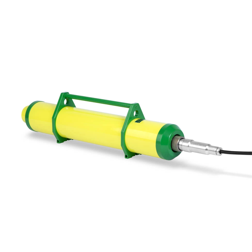 Блок излучателя цилиндрической формы имеет торцевой выход излучения и представляет собой герметичную конструкцию из нержавеющей стали, внутри которой располагается вакуумная рентгеновская трубка с высоковольтными управляющими элементами. Блок заполнен газовым диэлектриком под давлением 2 МПа. Снаружи имеется ручка для переноски и опорные приспособления для устойчивого положения на горизонтальной плоскости.