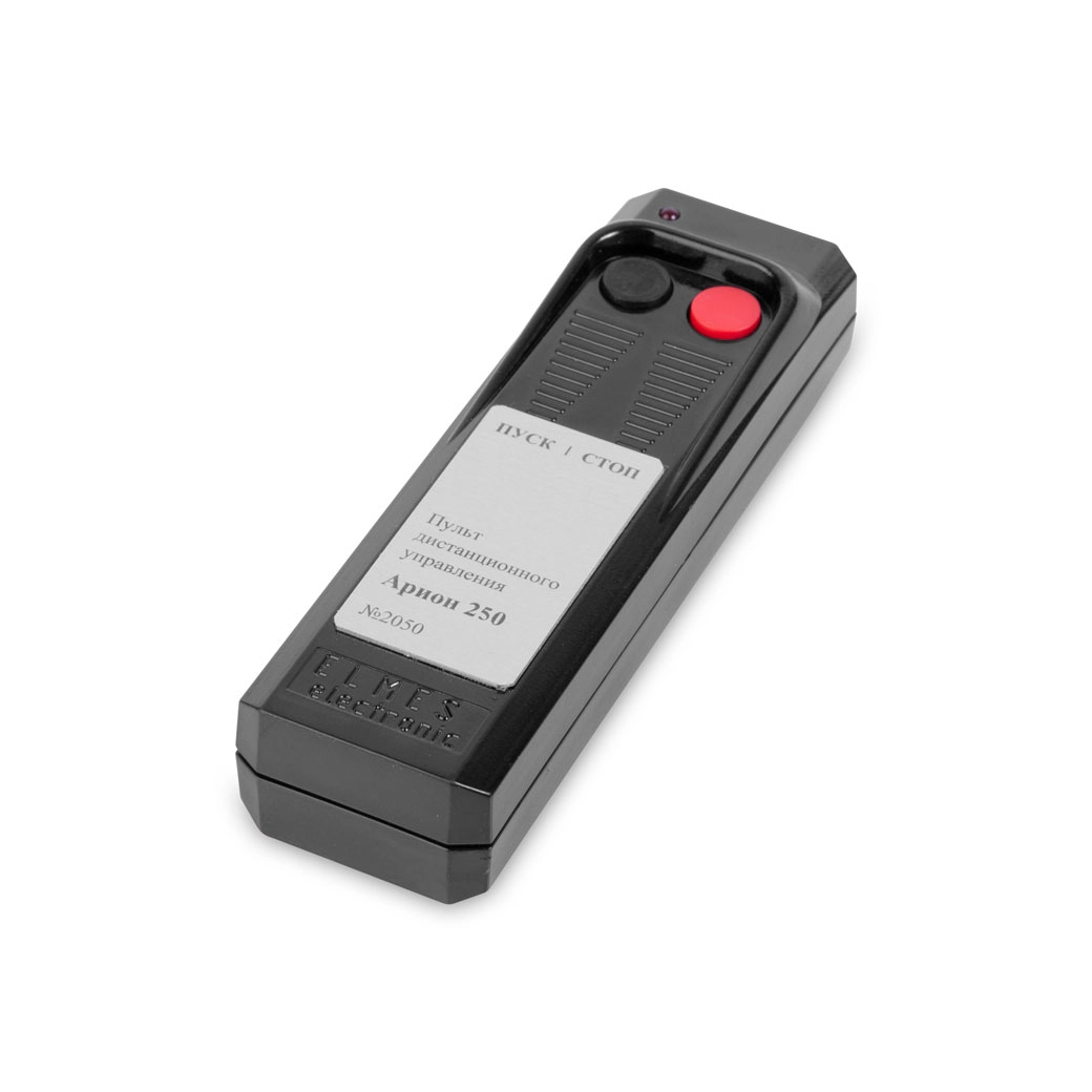 В новой версии АРИОН-250 запуск экспозиции можно осуществлять дистанционно при помощи радиоканального брелока, дублирующего кнопку "ПУСК" на пульте управления. Брелок выполнен в виде пластмассового корпуса, в котором размещены батарейка и передатчик радиосигнала. Снаружи расположены кнопки запуска и остановки излучения.