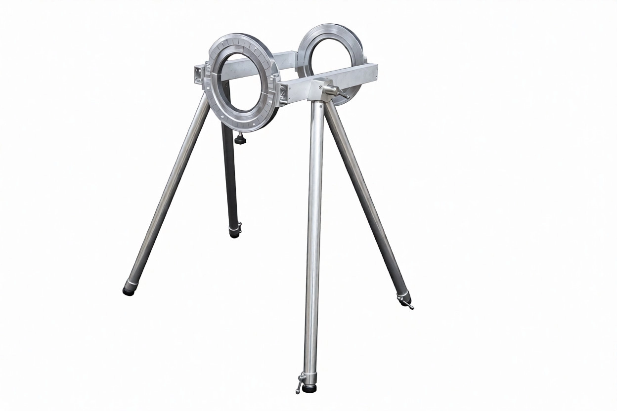 В зависимости от модели аппарата используются разные диаметры обжимных полуколец. Телескопические алюминиевые ноги штатива позволяют осуществлять регулировку положения рентгеновского аппарата по высоте. Регулировка положения аппарата в вертикальной плоскости и вокруг своей оси возможна в диапазоне 0 ÷ 360 градусов. Для отсчета угла поворота рентгеновского аппарата вокруг своей оси предусмотрена круговая шкала.