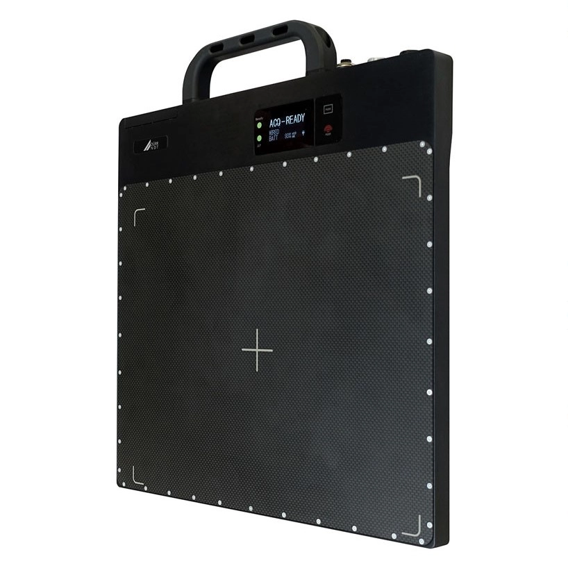 Конструктивно комплекс цифровой радиографии состоит из матрицы датчиков‐ сцинтилляторов на основе оксид-сульфид гадолиния (Gd2O2S:Tb), преобразующих рентгеновское излучение в световой оптический сигнал, фотодиодной матрицы на основе аморфного кремния, преобразующей оптический сигнал в электрический, и электронной схемы управления и обработки сигнала. В комплект поставки детектора входят: электронный модуль сопряжения с персональным компьютером по сетевому интерфейсу передачи данных, компакт‐диск с программным обеспечением, интерфейсный кабель. Принцип действия детектора заключается в следующем: под воздействием рентгеновского излучения, прошедшего от источника (рентгеновской трубки) через структуру тестируемого объекта, начинает светиться оксид-сульфид гадолиния (Gd2O2S:Tb) сцинтиллятора. Световой поток попадает на аморфную кремниевую фотодиодную матрицу, где происходит преобразование света в электрический ток. В дальнейшем ток поступает на тонкопленочные транзисторы, где пропорционально усиливается. Полученный сигнал конвертируется в цифровой, после чего переводится в видеоизображение, несущее информацию о внутренней структуре просвеченного объекта, которое выводится на монитор компьютера в режиме реального времени.