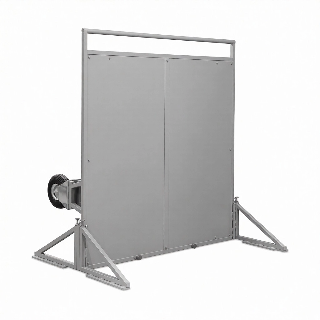 Основным элементом конструкции полевой рентгенозащитной ширмы АРИОН ШР является освинцованная панель. Панель заключена в металлический каркас на колесных опорах, которые оборудованы тормозным механизмом. Ширма оснащена усиленными колесами с пневматическими шинами, дополнительными упорами для фиксации ширмы в вертикальном положении и ручкой для перемещения в горизонтальном положении. При транспортировке упоры ширмы складываются и фиксируются на корпусе с помощью магнитов.