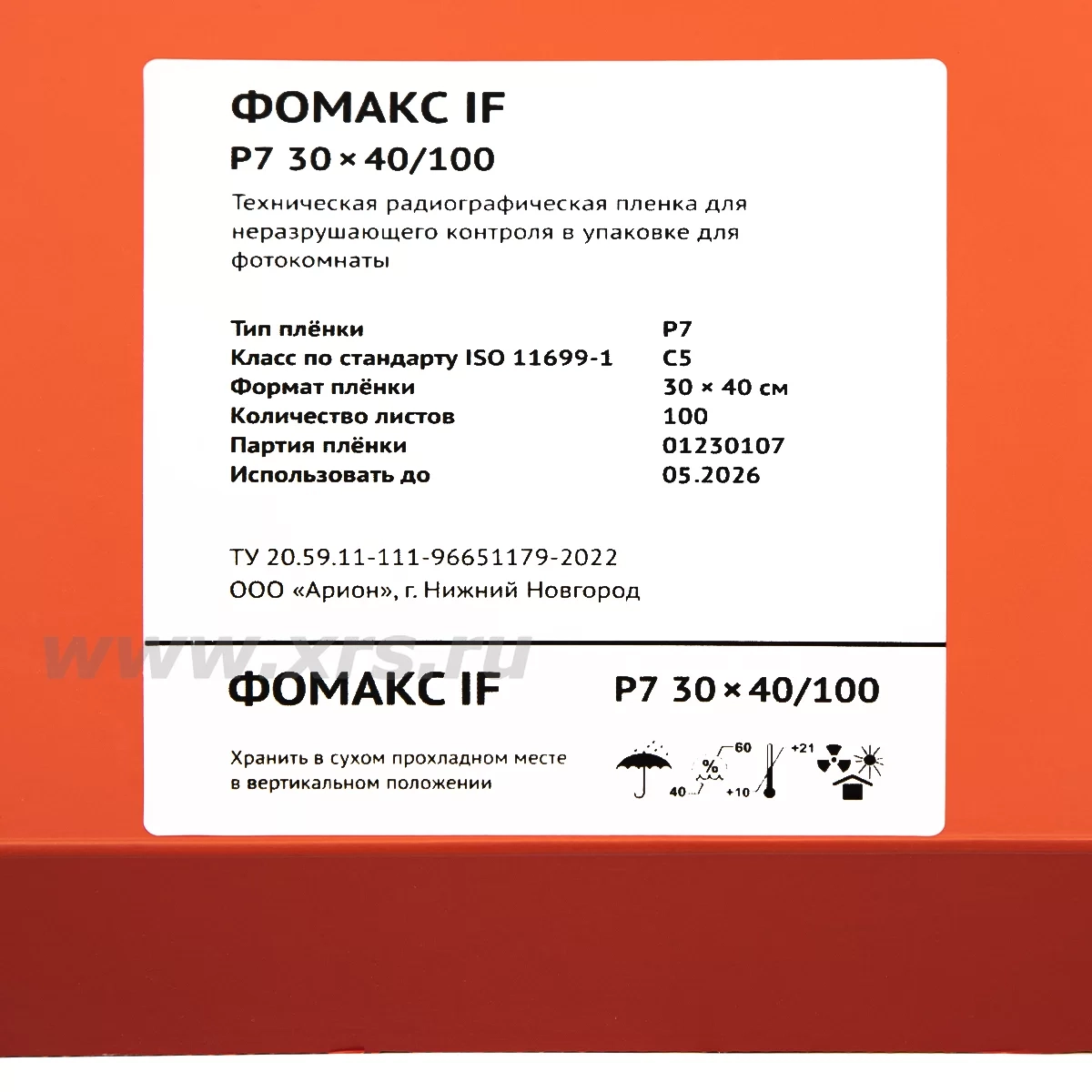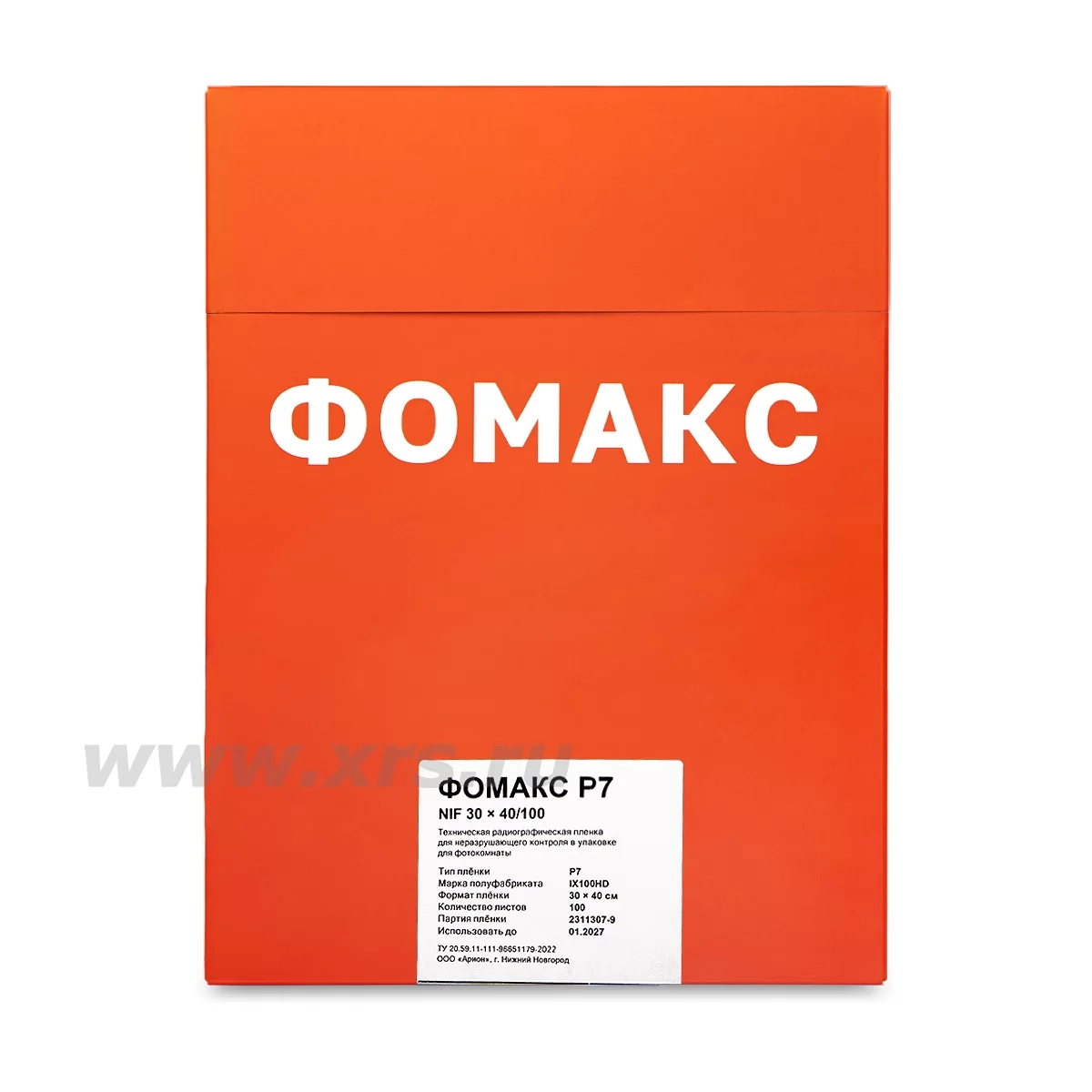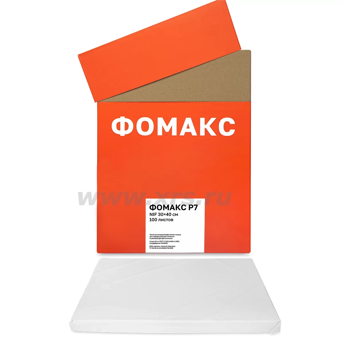 Пленка ФОМАКС Р7 производится в формате листовой радиографической пленки. Пленка листового формата упаковывается по 100 листов в светонепроницаемый конверт. Варианты упаковки: