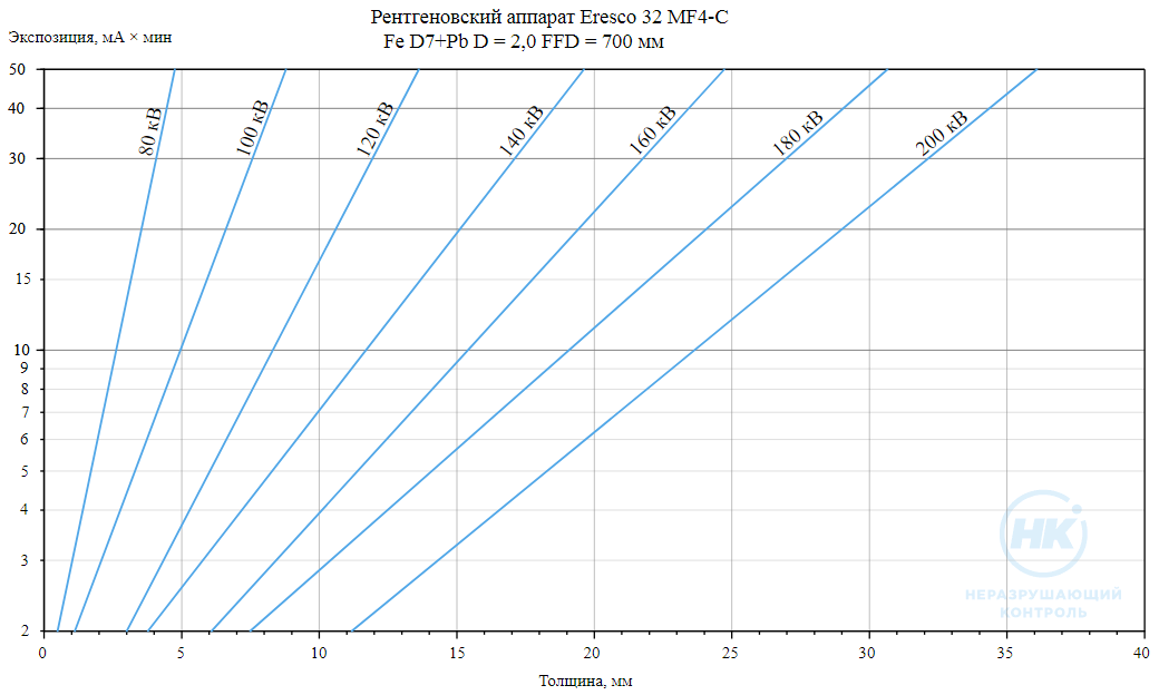 Переносной рентгеновский аппарат Eresco 32 MF4-C предназначен для панорамного просвечивания объектов. Диапазон напряжения: от 5 до 200 кВ. Просвечиваемая толщина по стали — 32 мм. Аппарат может работать в связке с кроулером.