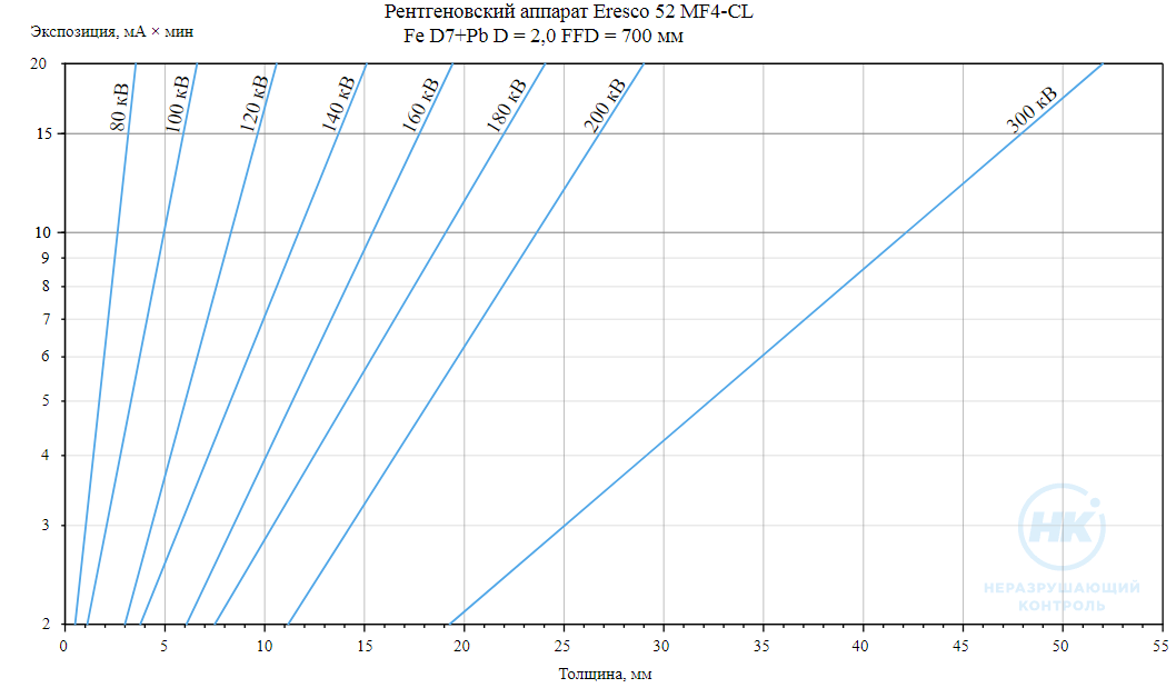 Переносной рентгеновский аппарат Eresco 52 MF4-CL предназначен для панорамного просвечивания объектов. Диапазон напряжения: от 5 до 300 кВ. Просвечиваемая толщина по стали — 52 мм. Аппарат может работать в связке с кроулером.