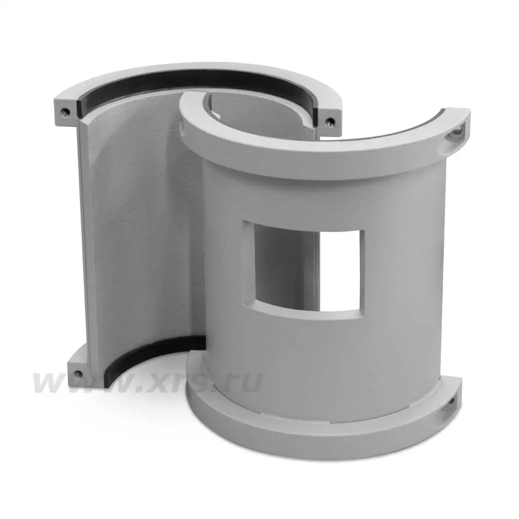 При проведении радиографического контроля в полевых условиях с использованием панорамных рентгенаппаратов при фронтальном просвечивании необходимо обеспечить радиационную безопасность персонала. Хомут-диафрагма XRS МП блокирует распространение ионизирующего излучения под телесным углом 360° и задает угол, достаточный для проекции излучения в пределах границ объекта контроля.