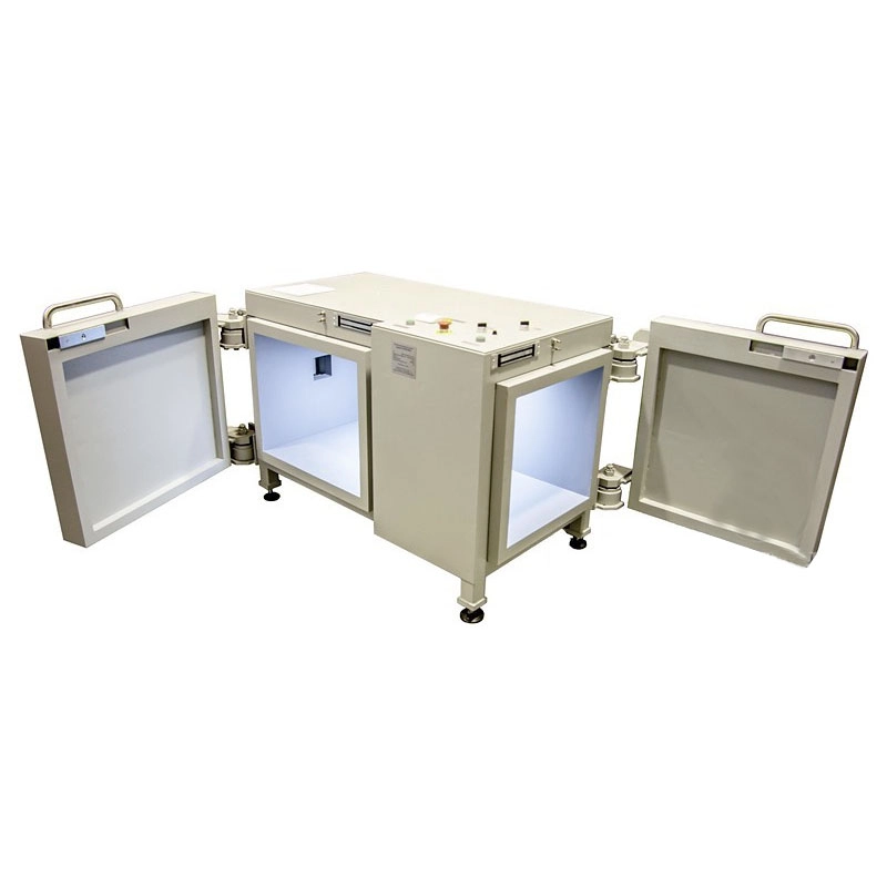 Конструкция камеры выполнена из стали и свинца, имеет две распашные двери для загрузки различных моделей рентгеновских аппаратов. Дополнительная радиационная защита не требуется. Для оперативного ввода кабеля питания и управления рентгеновским аппаратом предусмотрен специальный откатной рентгенозащитный кабельный ввод.