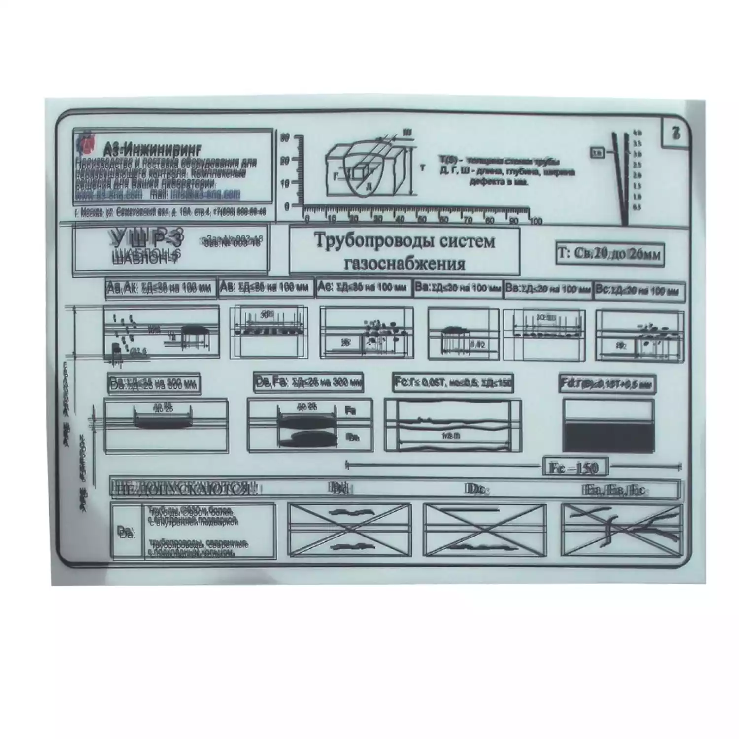 Универсальный шаблон радиографа УШР -1, УШР-2, УШР-3 предназначены для оперативной расшифровки радиографических снимков сварных швов трубопроводов, а также для обучения персонала.