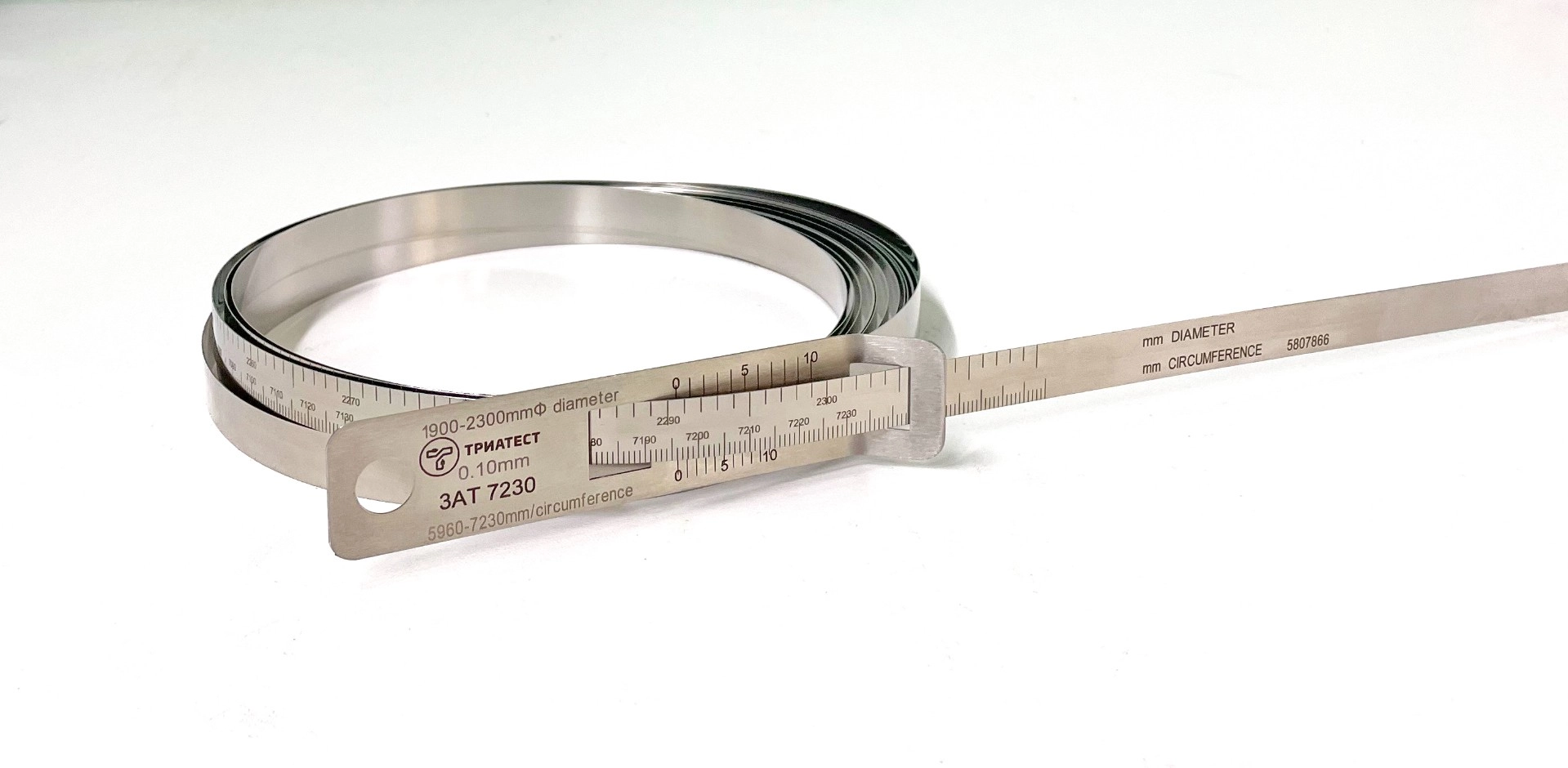 Циркометр из новой линейки «Триатест» — это надежный измерительный инструмент для контроля наружных диаметров (1900–2300 мм) и длин окружностей (5960–7230 мм). Предназначен для точной оценки линейных размеров, расчетов и графического построения в системах неразрушающего контроля крупногабаритных конструкций.