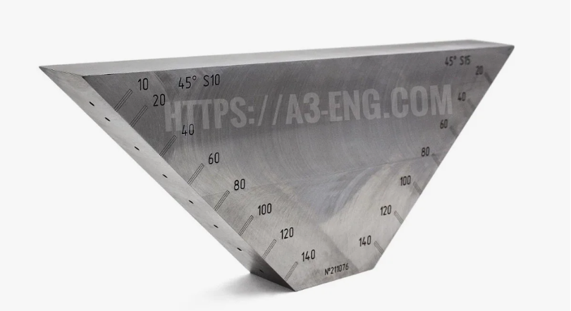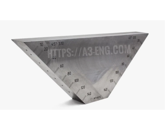 Угловые образцы со сварным швом оснащаются угловыми отражателями типа «зарубка» и отражателями типа «боковое цилиндрическое отверстие». Они используются для настройки чувствительности и длительности развертки дефектоскопов при контроле сварных соединений и основного металла с применением преобразователей типов П121 и П122 в соответствии с требованиями РД-25.160.10-КТН-016-15.