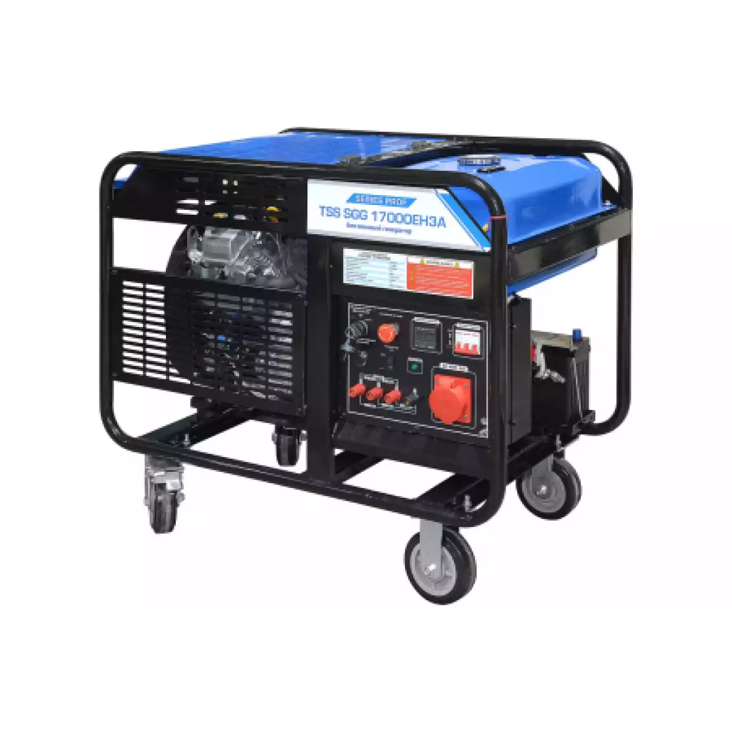 Бензогенератор трехфазный с электростартом, с возможностью подключения блока АВР (блок автоматики) Профессиональная серия бензогенераторов с высококачественными двигателями увеличенного ресурса LIFAN. Бензогенератор TSS SGG 17000EH3A предназначен для выработки электроэнергии с основными характеристиками: напряжение 220-380 вольт, частота 50 Гц и номинальной мощностью 15.5 кВт. Модель оснащена колесным комплектом, для удобства передвижения, отличается от других моделей увеличенным топливным баком 40 литров.