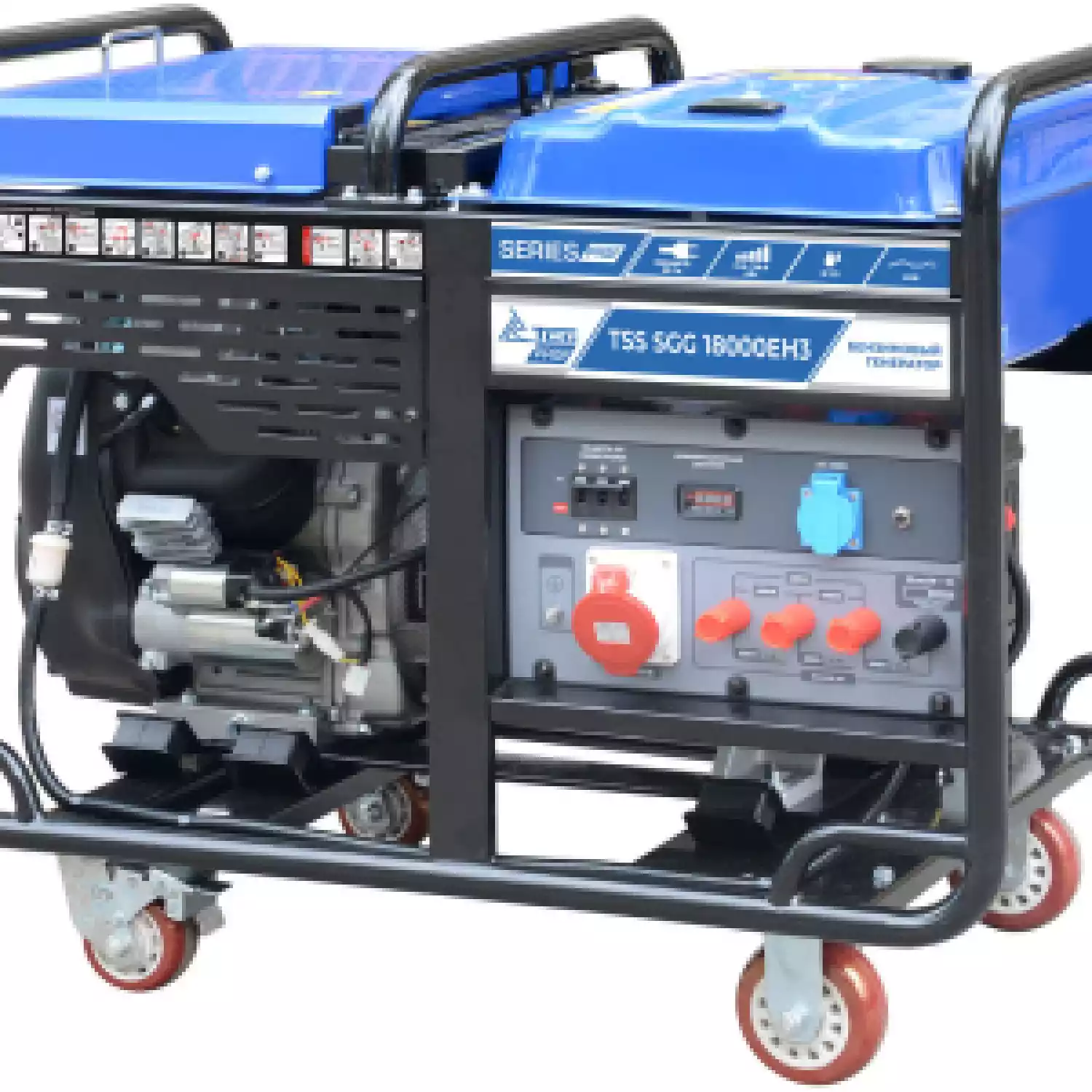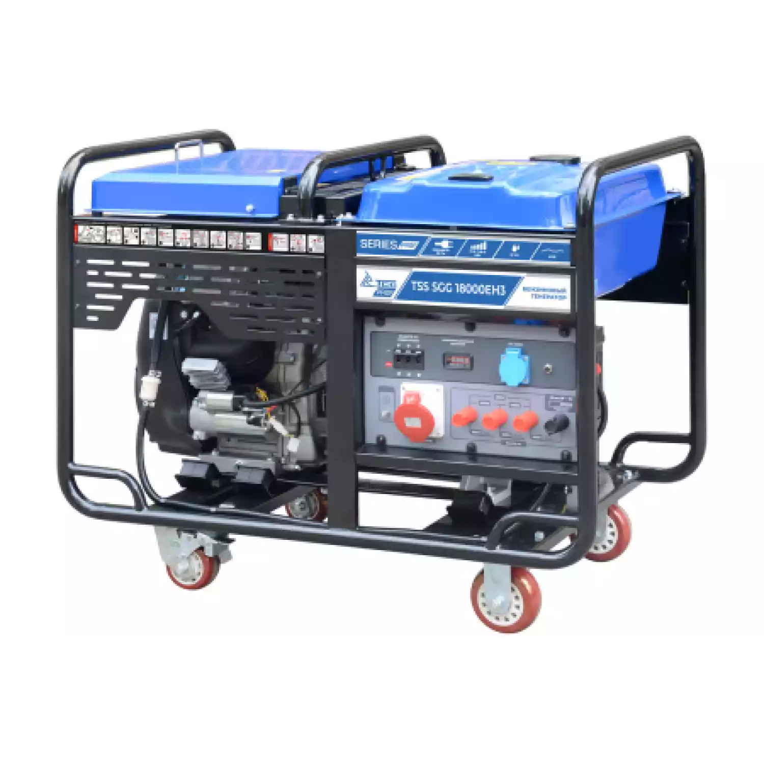 Бензиновый генератор 3-фазный на 17 кВт с электростартом. Профессиональная серия бензиновых электрогенераторов с высококачественными двигателями увеличенного ресурса LONCIN. Бензиновый генератор TSS SGG 18000EH3 предназначен для выработки электроэнергии с основными характеристиками: напряжение 220-380 вольт, частота 50 Гц и номинальной мощностью 17 кВт. Модель оснащена колесным комплектом, для удобства передвижения, отличается от других моделей увеличенным топливным баком 40 литров.