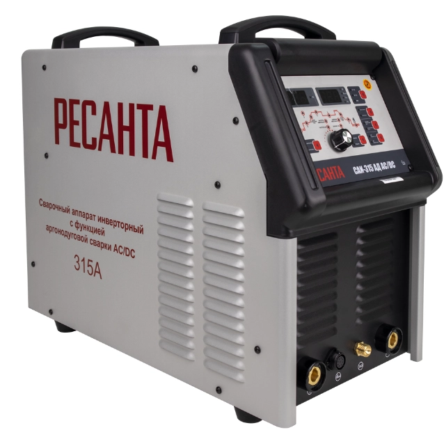 РЕСАНТА САИ-315 АД AC/DC – современная инверторная аргонодуговая установка, позволяющая работать как на постоянном (сварка черных и нержавеющих сталей, меди, титана и пр.), так и на переменном токе (сплавы алюминия, магния, медные сплавы больших толщин и пр.), где требуется удаление окислов со свариваемой поверхности). Использование и развитие инверторной технологии в сварке существенно уменьшает массо-габаритные характеристики. Поэтому наши сварочные аппараты AC/DC легче и более эффективны по сравнению с традиционными. Основным принципом AC/DC установки является использование двойного инвертора и создание полуволн прямоугольной формы, которая делает сварочную дугу более стабильной, увеличивает тепловложение и очищающий эффект.