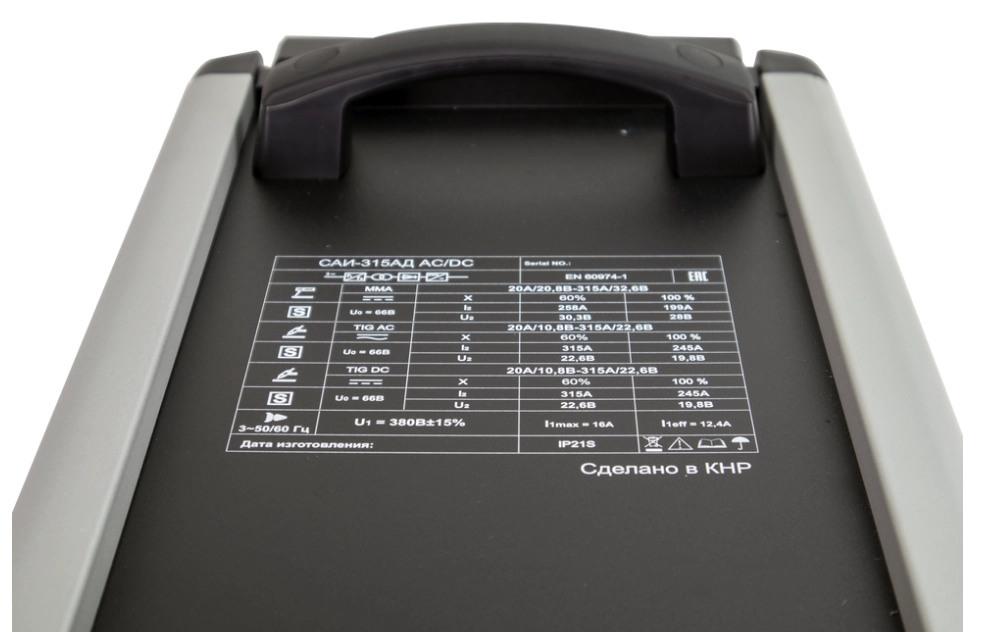 | Сварочный ток TIG, A | 20-315 (TIG AC-DC) |
