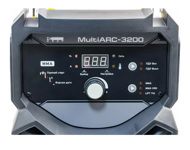 MultiARC-3200 — промышленный многофункциональный сварочный аппарат нового поколения, в котором удачно сочетаются многозадачность, отличная производительность, высокая надежность, современный дизайн и простота управления. Возможность использования технологий ММА и TIG, независимой настройки величины стартового тока (Hot Start) и форсажа дуги (Аге Force), а также отключаемая функция VRD обеспечивают идеальные сварочные характеристики и контроль дуги при выполнении сварочных работ любой сложности.