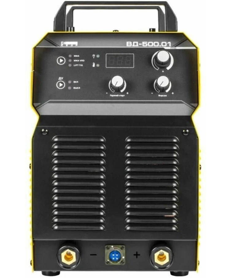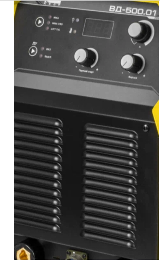 Достоинствами ВД-500.01 является наличие отключаемой функции VRD - понижение напряжения холостого хода, возможность регулировки сварочного тока с пульта дистанционного управления.