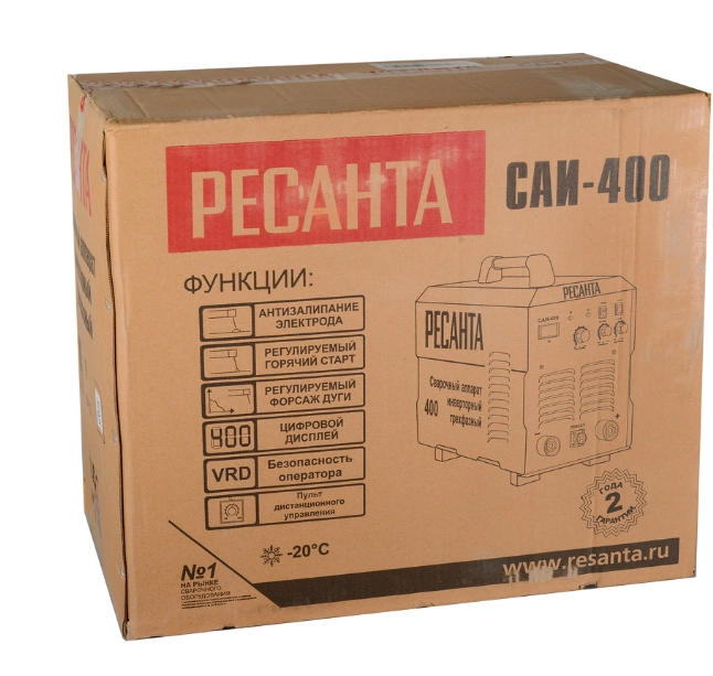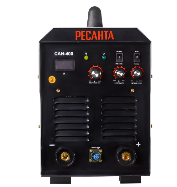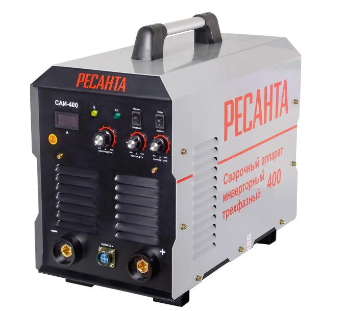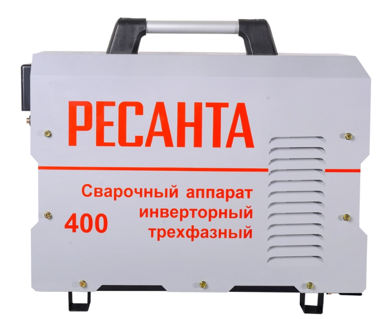 Сварочный аппарат Ресанта САИ-400 – инверторный источник питания постоянного тока, разработанный для ручной электродуговой сварки, методом ММА, плавящимся покрытым электродом. Прибор адаптирован под эксплуатирование в сетях с перепадами в диапазоне 380 (±15%) В. Этого вполне достаточно, чтобы обеспечить стабильную работу инвертора Ресанта САИ 400, в любом режиме нагрузки.