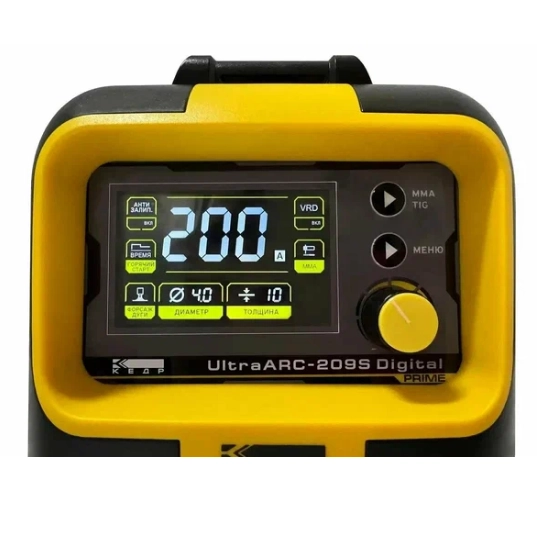 Аппарат инверторный КЕДР UltraARC-209S Digital спроектирован с учетом возможности продолжительной работы даже в сложных климатических условиях и промышленных режимах эксплуатации. Аппарат обладает выдающимися для своего класса характеристиками и широким функционалом. Использующий UltraARC-209 специалист может настроить не только величину сварочного тока в пределах 20-200А, но и уровень его динамического изменения в момент поджига и процесса сварки при помощи функций горячий старт (Hot Start) и форсаж дуги (Агc Force). Наличие цифрового дисплея гарантирует сверхточную установку всех параметров, что позволяет производить сварку ответственных изделий и конструкций. Отключаемая функция снижения напряжения холостого хода наряду с выводом заземления обеспечивают высокий уровень безопасности при эксплуатации.
