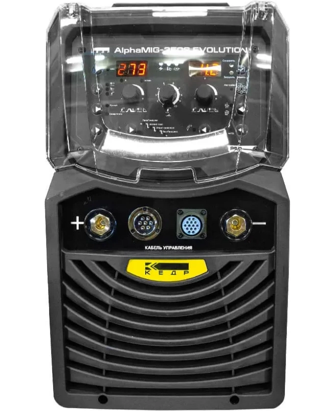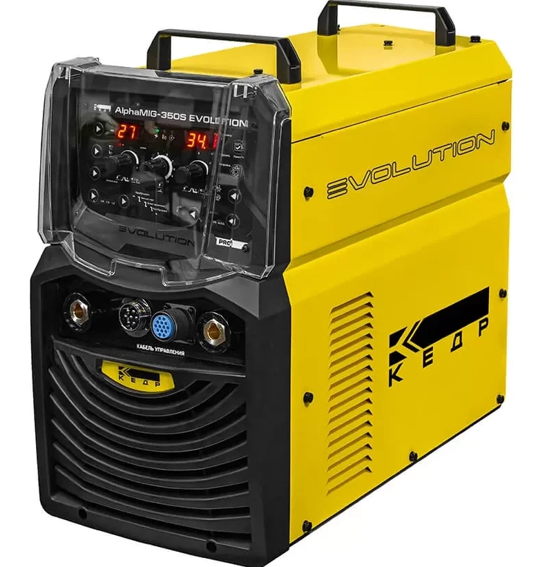 Промышленный сварочный полуавтомат AlphaMIG-350S Evolution предназначен для полуавтоматической и ручной дуговой сварки изделий из углеродистых, низко- и высоколегированных сталей, а также алюминиевых сплавов. Аппарат отлично подходит для использования на производственных предприятиях, строительных площадках, в автомастерских и на станциях техобслуживания сельскохозяйственной техники. Сварочный ток до 350А и надежный 4-роликовый подающий механизм в сочетании с возможностью установки катушек КЗ00 обеспечивают высокую производительность и непрерывность сварочного процесса. КЕДР AlphaMIG-350S Evolution оснащен интеллектуальной моделью управления, позволяющей сварщику в кратчайшие сроки подготавливать оборудование к работе и переходить от процесса к процессу. Помимо этого, аппарат позволяет осуществлять ручную подстройку скорости подачи в синергетическом режиме, адаптируя сварочные характеристики под конкретный материал и условия работы.