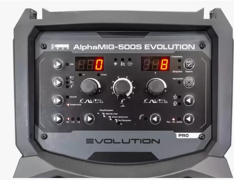 Промышленный сварочный полуавтомат AlphaMIG-500S Evolution предназначен для полуавтоматической и ручной дуговой сварки изделий из углеродистых, низко- и высоколегированных сталей, а также алюминиевых сплавов. Аппарат отлично подходит для использования на производственных предприятиях, строительных площадках, в автомастерских и на станциях техобслуживания сельскохозяйственной техники. Сварочный ток до 500 А и надежный 4-роликовый подающий механизм в сочетании с возможностью установки катушек КЗ00 обеспечивают высокую производительность и непрерывность сварочного процесса. КЕДР AlphaMIG-500S Evolution оснащен интеллектуальной моделью управления, позволяющей сварщику в кратчайшие сроки подготавливать оборудование к работе и переходить от процесса к процессу. Помимо этого, аппарат позволяет осуществлять ручную подстройку скорости подачи в синергетическом режиме, адаптируя сварочные характеристики под конкретный материал и условия работы.