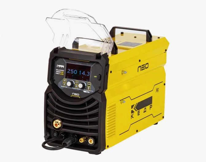 Полуавтомат КЕДР MultiMIG-2500DP NEO LCD использует новейшую технологию широтно-импульсной модуляции (ШИМ) и высокоэффективные силовые модули биполярных транзисторов с изолированным затвором (IGBT). Полуавтомат КЕДР MultiMIG-2500DP NEO LCD характеризуются высокой мобильностью, малыми размерами, небольшим весом, низким потреблением энергии, удобством использования и широким функционалом благодаря высокотехнологичному LCD дисплею. Полуавтомат КЕДР MultiMIG-2500DP NEO LCD оснащен активной системой коррекции выходной мощности в зависимости от изменений входящего тока и напряжения питающей сети PFC (Power Factor Correction). Данная система служит для снижения потребляемой реактивной мощности и позволяет стабильно работать сварочному аппарату при больших перепадах сетевого напряжения, при питании от генератора и при работе от удлинителей. Полуавтомат КЕДР MultiMIG-2500DP NEO LCD является высокотехнологичным многофункциональным промышленным источником питания для MIG/MAG, MMA и TIG сварки.
