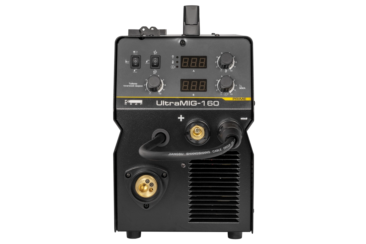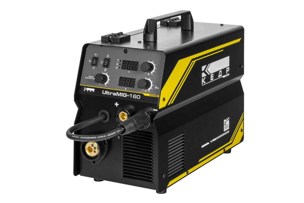 Полуавтомат КЕДР UltraMIG-160 (220В, 30-160А) — предназначен для сварки на малых и средних предприятиях, частных мастерских, а также для использования в домашних хозяйствах. Аппарат выполнен на современных IGBT-модулях, надежно защищенных силовой частью, а высокопрочный металлический корпус позволяет использовать его в тяжелых промышленных условиях. Цифровая панель с дисплеями значительно упрощает работу с данным аппаратом и позволяет снизить классификацию сварщика без потери качества сварки.