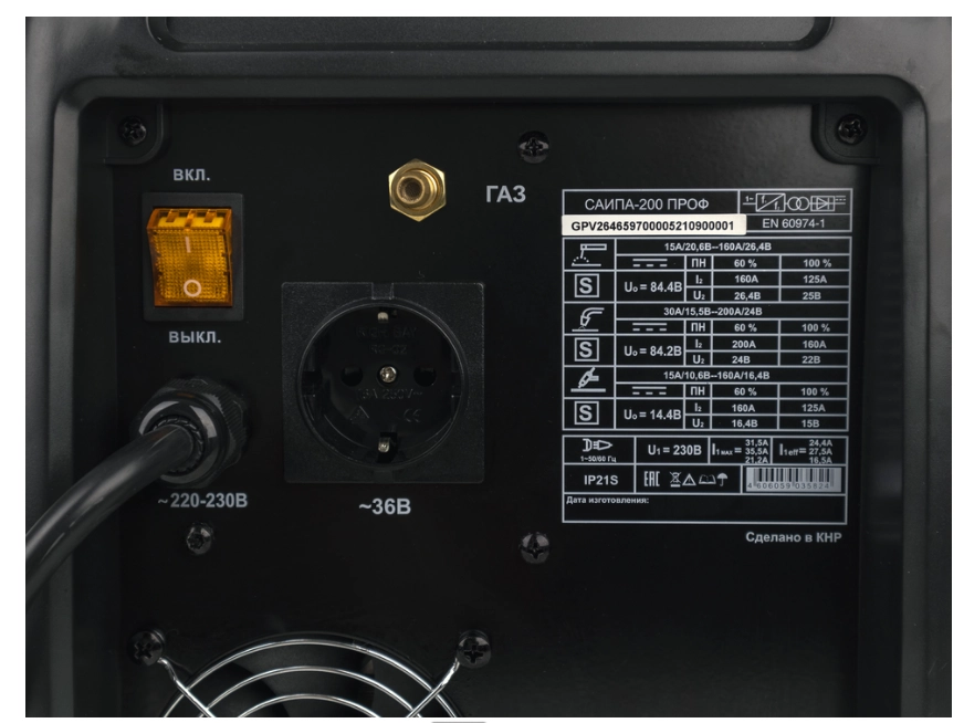 Аппарат работает от однофазной сети 220-230 В с частотой 50 Гц.