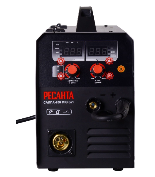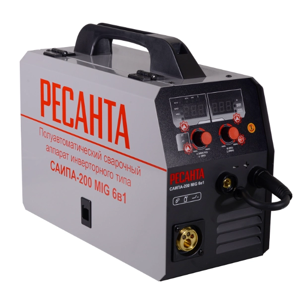Сварочный аппарат инверторный полуавтоматический РЕСАНТА САИПА-200 с функцией ММА предназначен для ручной электродуговой сварки постоянным током проволокой в среде защитного газа — углекислого, аргона или их смеси. Применяется для высококачественной сварки низкоуглеродистых сталей, низколегированных и нержавеющих сталей, чугуна и других металлов в строительстве, монтажных и ремонтных работах различной степени сложности. Встроенная защита от перегрева защищает агрегат от поломки. Можно регулировать скорость подачи проволоки и сварочный ток, что позволяет добиться высокого качества сварного соединения.