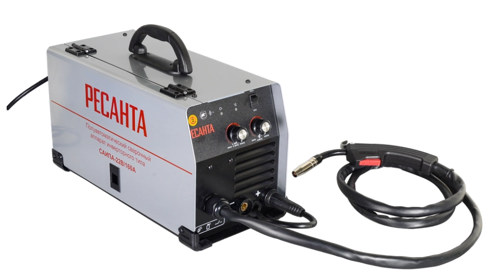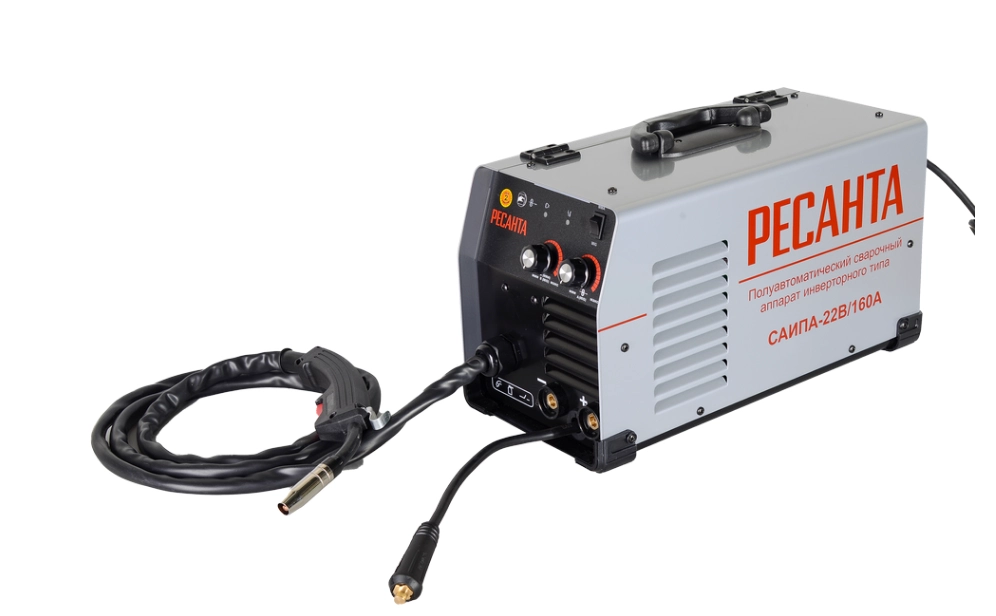 Сварочный полуавтомат Ресанта САИПА-22В/160А – источник питания инверторного типа, функционирующий на постоянном токе. Прибор разработан для сваривания движущим проволочным электродом в аргонной, углекислой среде, либо плавящимся, с рутиловым покрытием – способом ММА (ручная дуговая сварка).