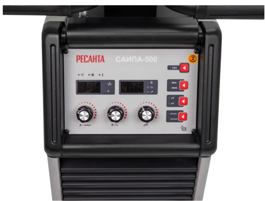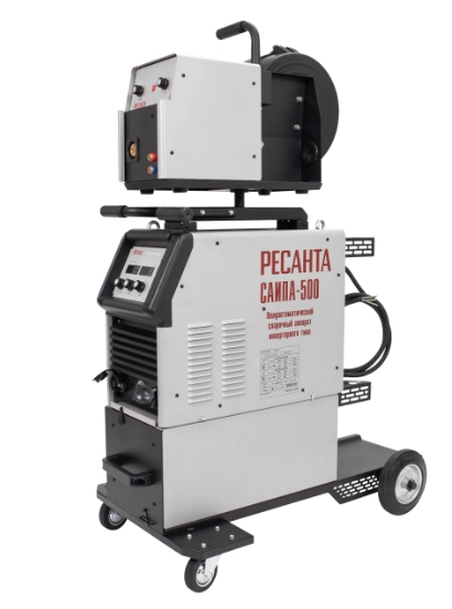Сварочный аппарат инверторный полуавтоматический РЕСАНТА САИПА-500 с функцией ММА предназначен для ручной электродуговой сварки постоянным током проволокой в среде защитного газа – углекислого, аргона или их смеси. Применяется для высококачественной сварки низкоуглеродистых сталей, низколегированных и нержавеющих сталей, чугуна и других металлов в строительстве, монтажных и ремонтных работах различной степени сложности. Встроенная защита от перегрева защищает агрегат от поломки. Можно регулировать скорость подачи проволоки и сварочный ток, что позволяет добиться высокого качества сварного соединения.