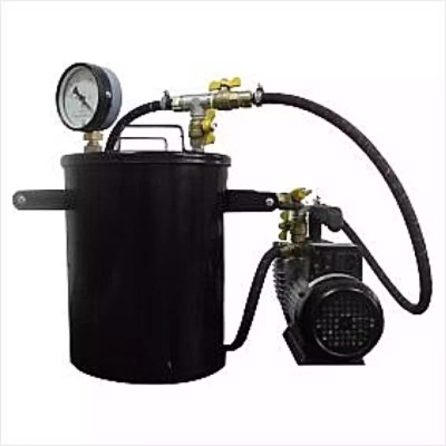 Установка состоит из двух функциональных узлов при эксплуатации используемых совместно – герметичного бака для испытываемых образцов и вакуумного насоса, соединяемых между собой гибким резиновым шлангом.