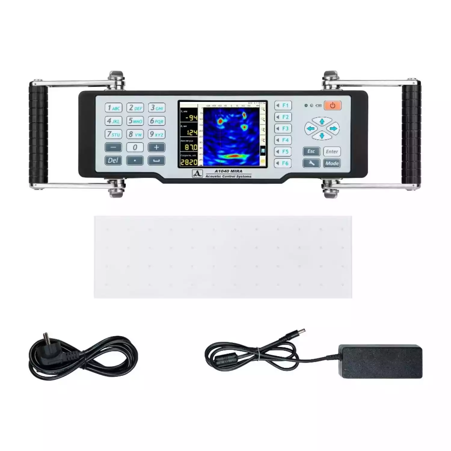 Электронный блок, сейсмоприемник, молоток с демпфером, кабель USB, зарядное устройство, CD диск с программным обеспечением.