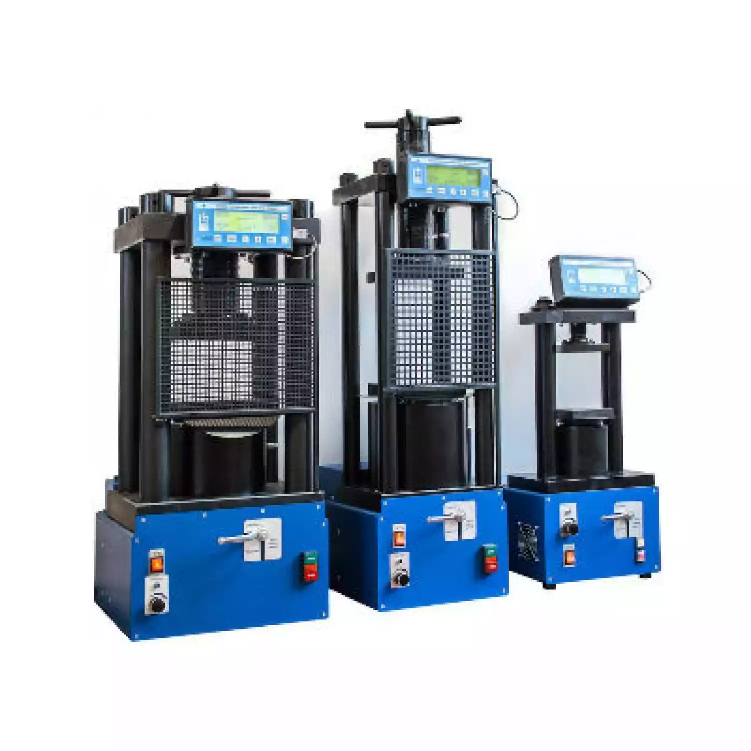 Прессы снабжены электрическим приводом (сеть 220 В, 50 Гц) и тензометрическим силоизмерителем. Индикация ре-зультатов испытаний цифровая (графический дисплей с подсветкой шкалы). Пульт управления прессов обеспечивает ввод исходных данных (размер образца, скорость нагружения, номер серии), поддержание установленной скорости на-гружения и вычисление прочности бетона по результатам нагружения