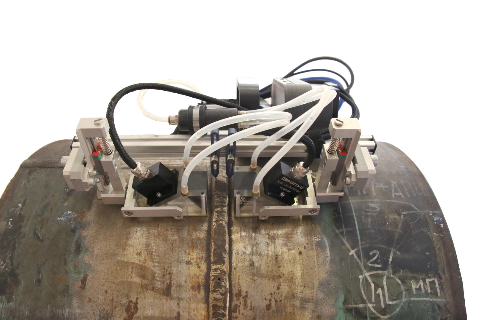 Расположение ходовой части с одной стороны шва обеспечивает равномерное движение вне зависимости от смещения кромок, а специальная конструкция магнитных колес гарантирует плавность хода на любой поверхности, легкий переход через продольные швы и удобное ручное подруливание при движении.
