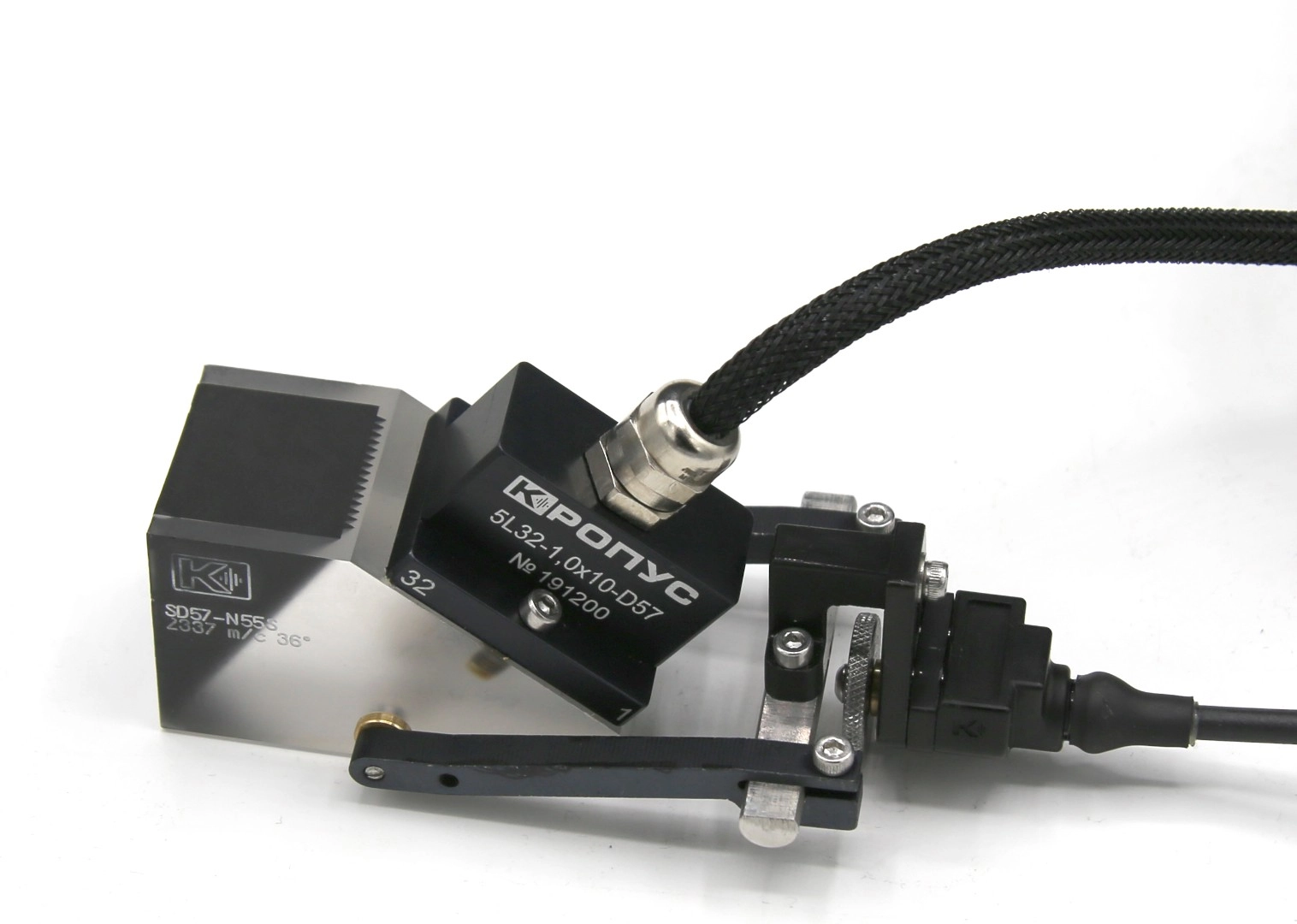 Ручной датчик пути (энкодер), с креплениями для установки на различные призмы ФР преобразователей. Предназначен для записи развертки изделия при ультразвуковом сканировании объекта контроля.