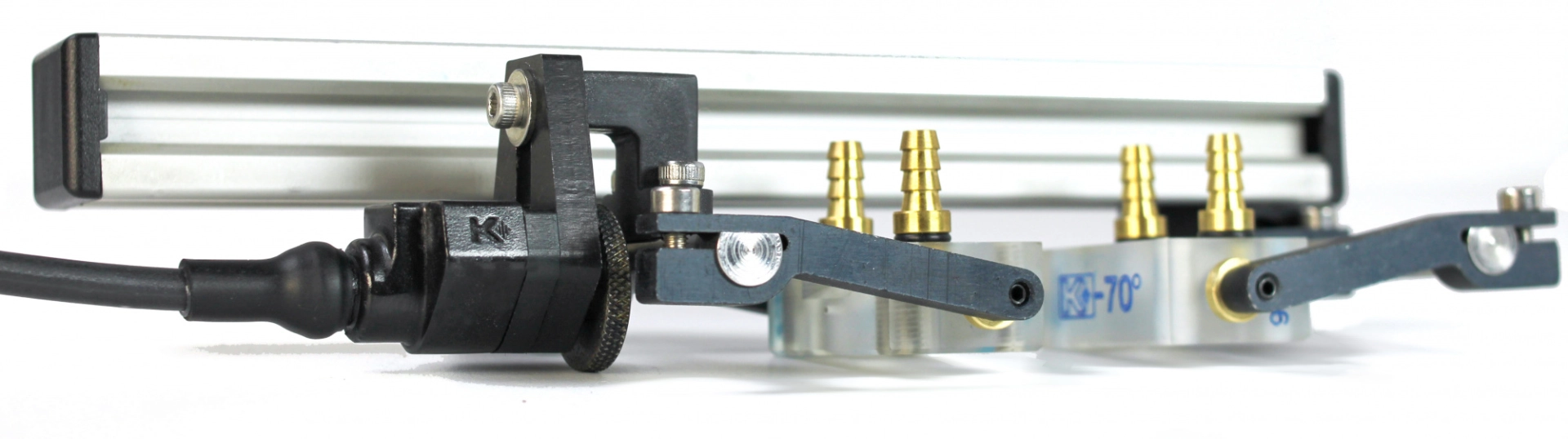 Сканер оснащен двумя пружинными подвесами для установки пары стандартных призм (шириной 32 мм) с ультразвуковыми контактными преобразователей для ToFD метода.