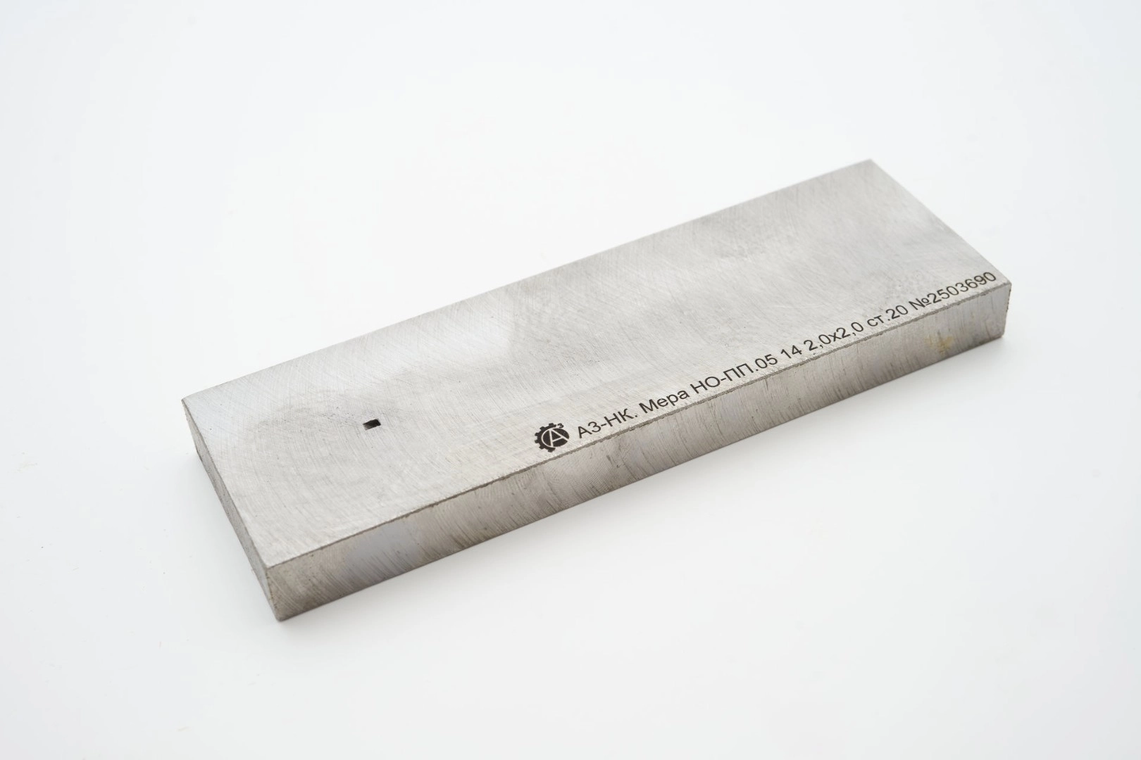 Мера НО-ПП.05 представляет собой изделие в виде параллелепипеда, с двумя зарубками равных размеров, нанесенных на рабочую и донную поверхности и служащих отражателями ультразвуковых волн. Произведены в соответствии с 427610-011-4407661-2019.ТУ.