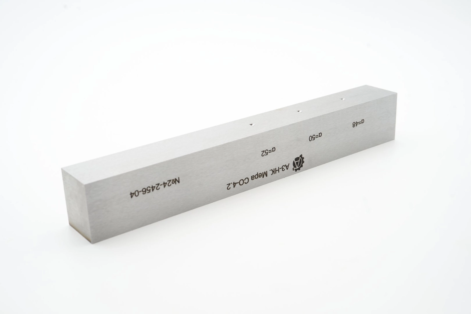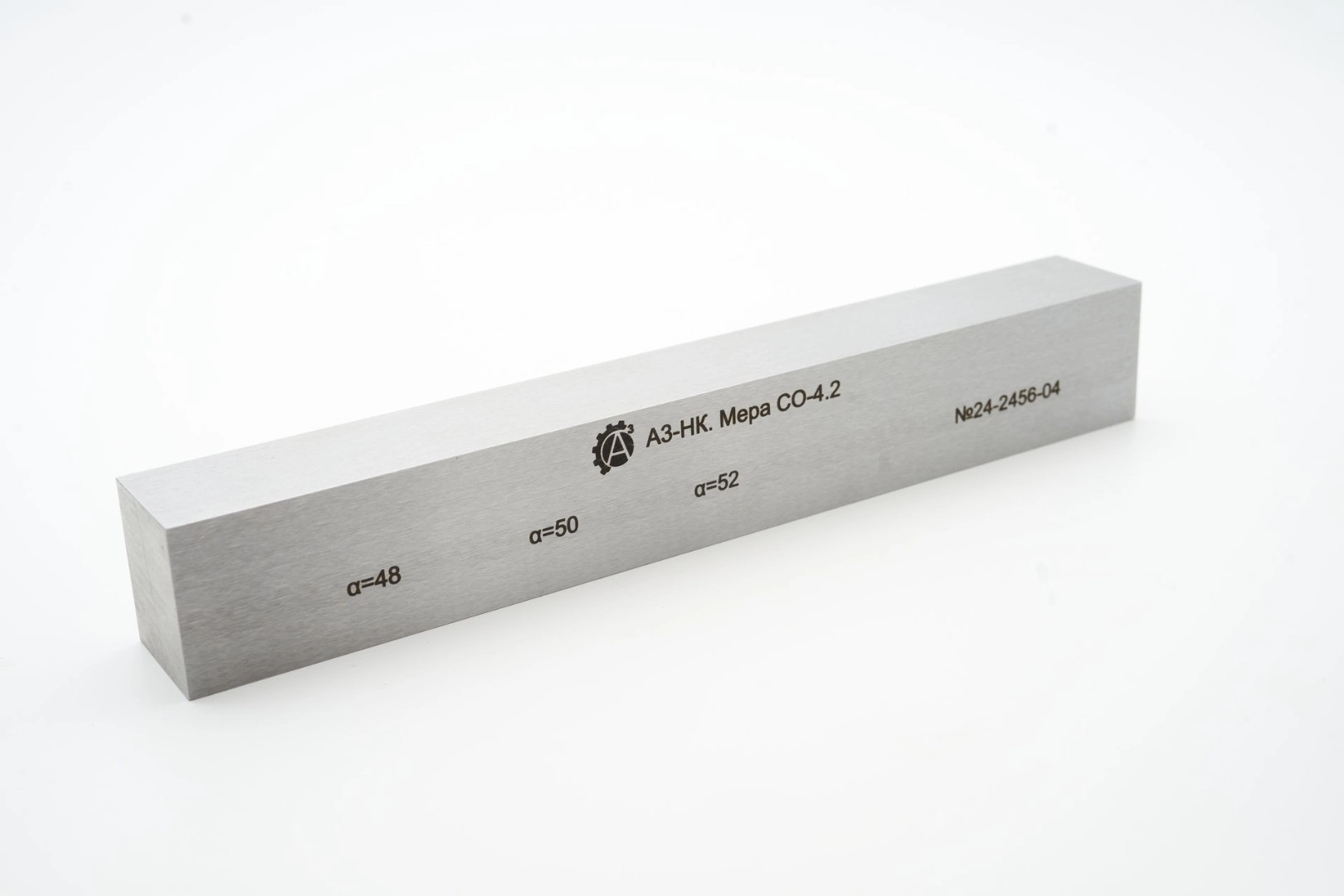 Мера СО-4.2 представляет собой изделие в виде параллелепипеда с нанесенным на нем дефектами в виде сегментных отражателей. Произведены в соответствии с 427610-011-4407661-2019.ТУ.