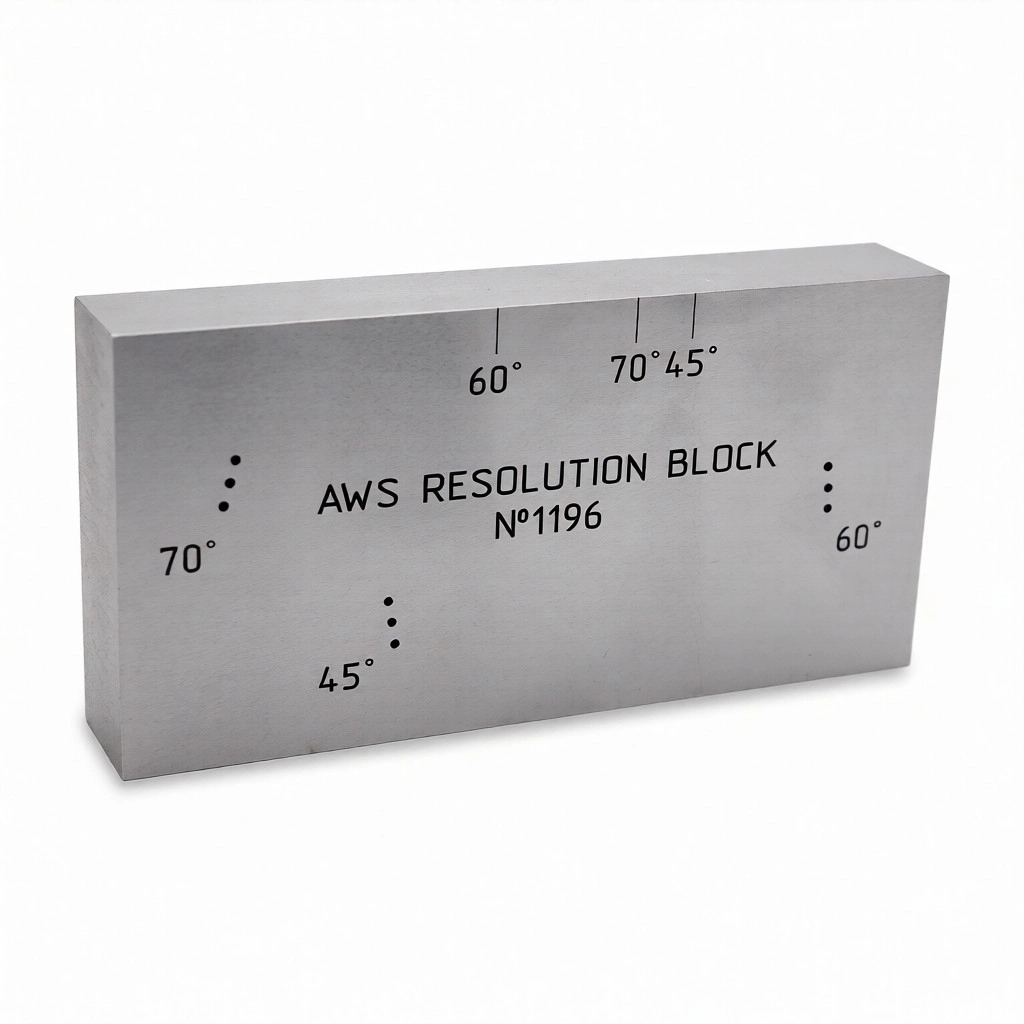Блок предназначен для определения длительности развертки и разрешающей способности ультразвукового дефектоскопа при использовании ПЭП с различными углами ввода (60, 70 и 45 градусов). ⠀
