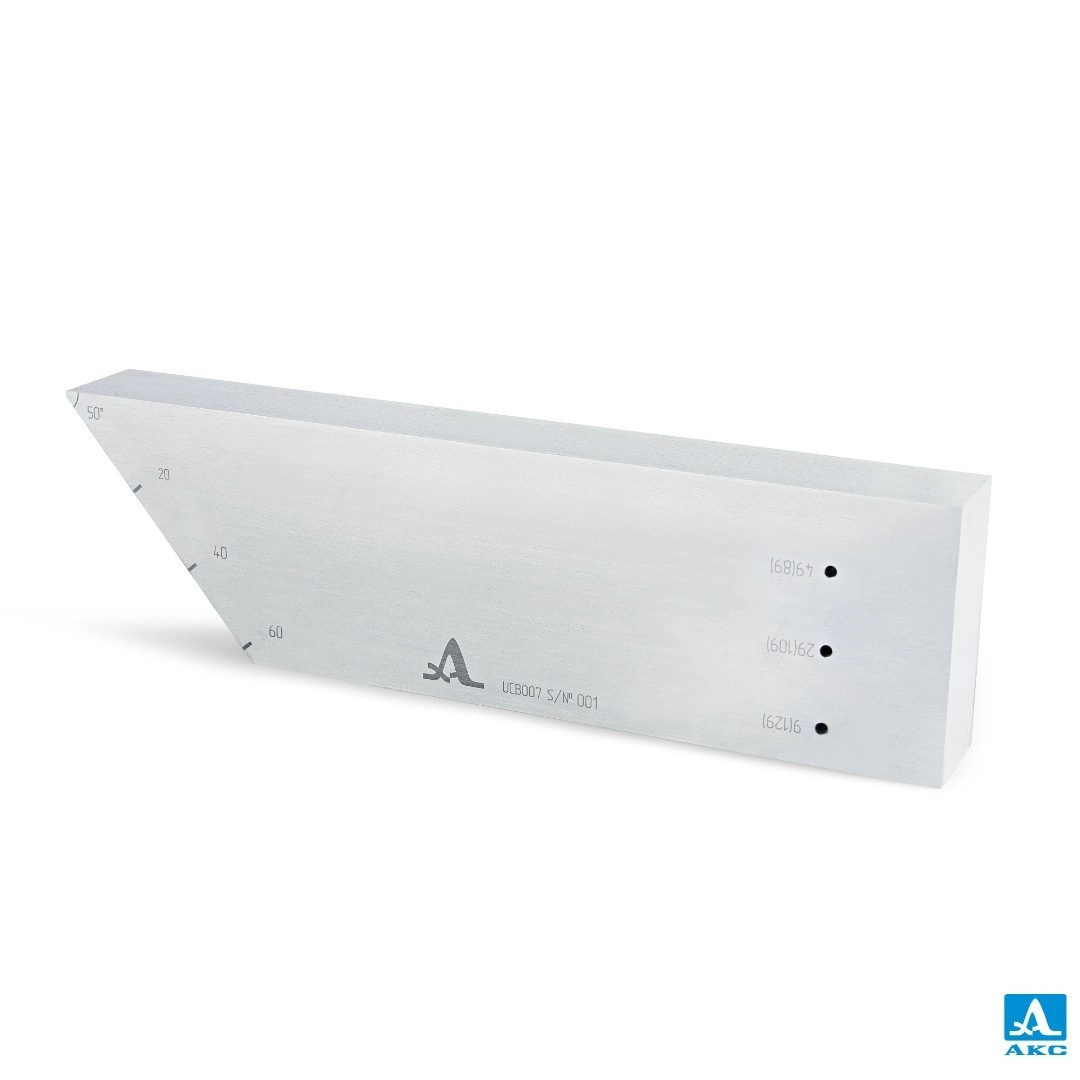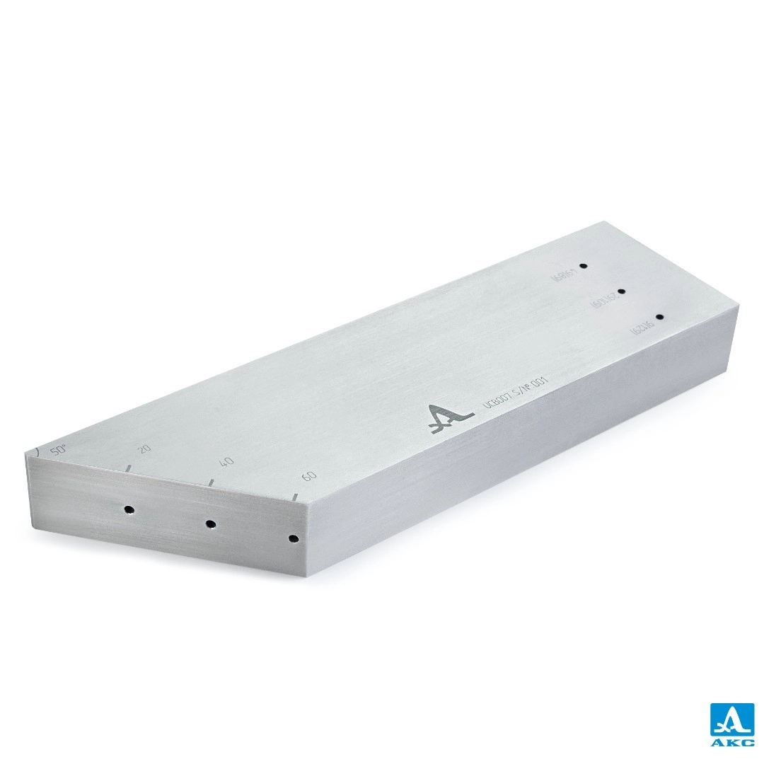 Калибровочный образец UCB007 применяется при проведении ультразвукового контроля наклонными преобразователями и антенными решетками изделий, изготовленных из углеродистых сталей, со скоростью ультразвука 3250 ± 50 м/с (поперечная волна), прошедших аналогичную термическую обработку.
