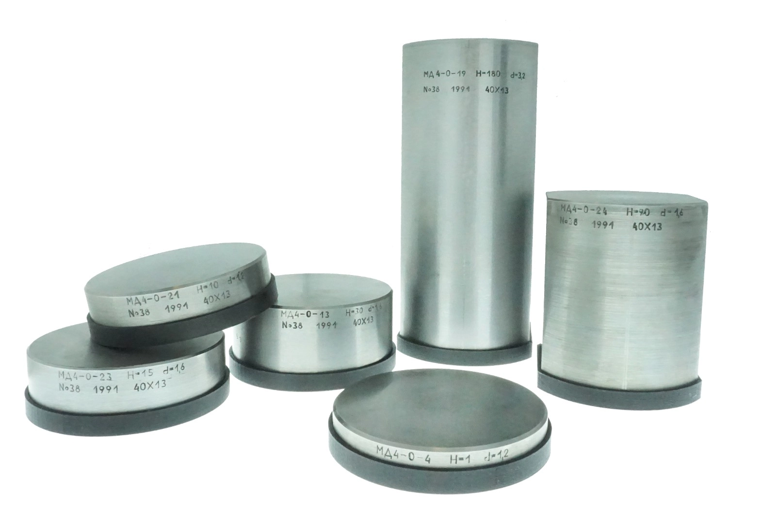 Комплект из 25 образцов для измерения параметров (чувствительности, погрешности измерения глубины залегания и эффективной площади отражателя) ультразвуковых импульсных дефектоскопов и получения опорного сигнала от дискового отражателя при аттестации и поверке стандартных образцов предприятий. Материал – сталь 40Х13.