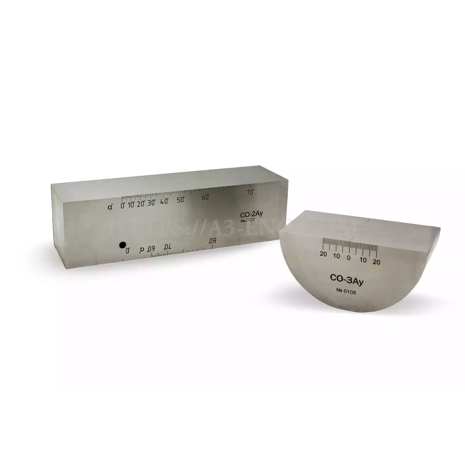Образец НО-СО-3Ау применяют для определения точки выхода центрального луча и стрелы ПЭП. Ширина обоих образцов составляет не менее 60 мм, остальные размеры идентичны мерам СО-2 и СО-3 из ГОСТ Р 55724-2013. Также возможно изготовление НО-СО-2Ау и НО-СО-3Ау с криволинейными рабочими поверхностями для работы с притертыми ПЭП.