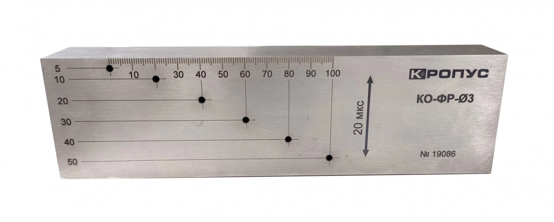 Стандартный образец для выравнивания угловой чувствительности (ACG- Angle Corrected Gain / УРЧ) на дефектоскопах с фазированными антенными решетками. Изготавливается из различных материалов.