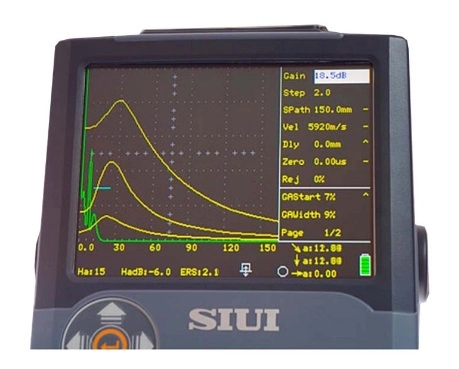 - Благодаря высокому разрешению экрана и возможности сканирования больших толщин, этот дефектоскоп способен выявить дефекты в объектах различных размеров, начиная от тонкостенных деталей и заканчивая крупными поковками.